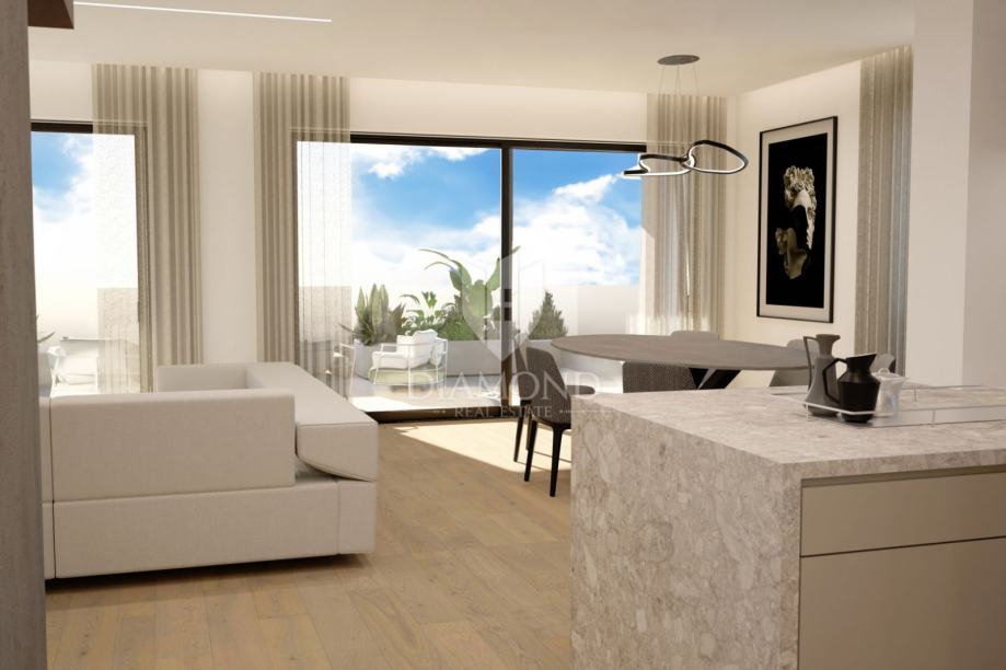 Ova stambena zgrada predstavlja vrhunac arhitekture i udobnosti. Schuco profili za prozore pružaju elegantan izgled, dok kamena vuna debljine 12 cm osigurava izvrsnu izolaciju. Lift, video portafon i sustav video nadzora dodatno podižu razinu sigurnosti i udobnosti. Čak dva garažna mjesta u vlasništvu stana u podrumu nude praktičnost i sigurnost za vaša vozila. Uživajte u savršenom temperaturnom balansu tijekom cijele godine zahvaljujući sofisticiranim sustavima grijanja i hlađenja. Podno grijanje s toplinskim pumpama Mitsubishi Electric, upravljano putem Wifi, pruža ugodnu toplinu, dok se hlađenje odvija zasebno, također putem Mitsubishi Electric sustava upravljanog Wifi-jem. Sloboda da prilagodite svoj dom prema vlastitim potrebama uvijek je na dohvat ruke.