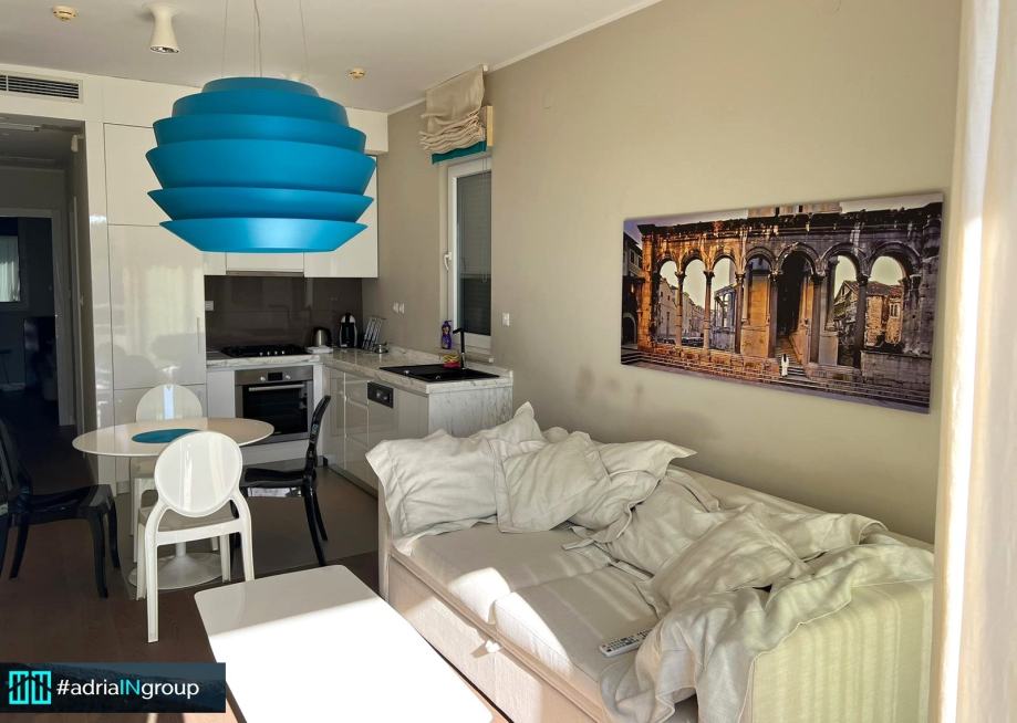 A comfortable and luxurious one-room apartment for sale in Podstrana, located in an attractive location, only eighty meters from the beautiful beach.