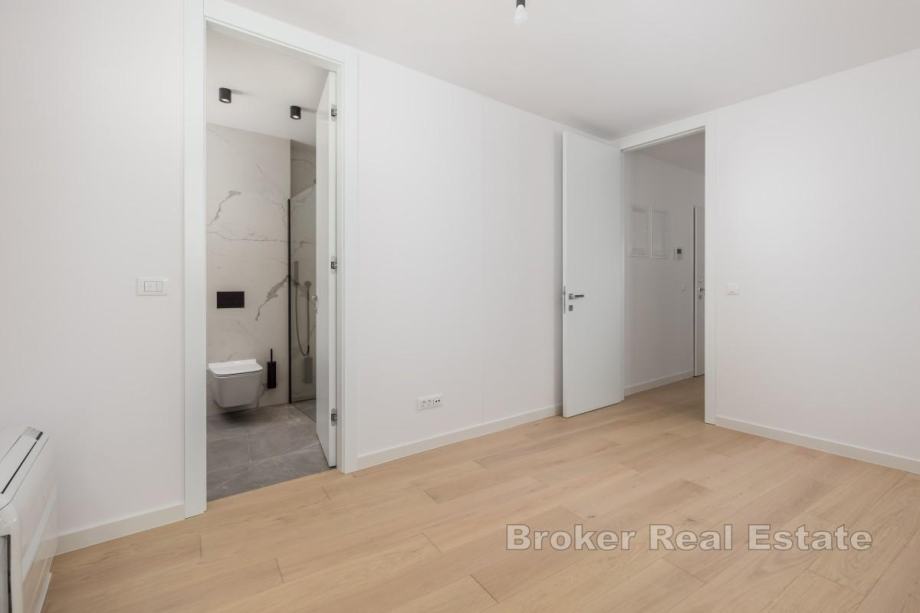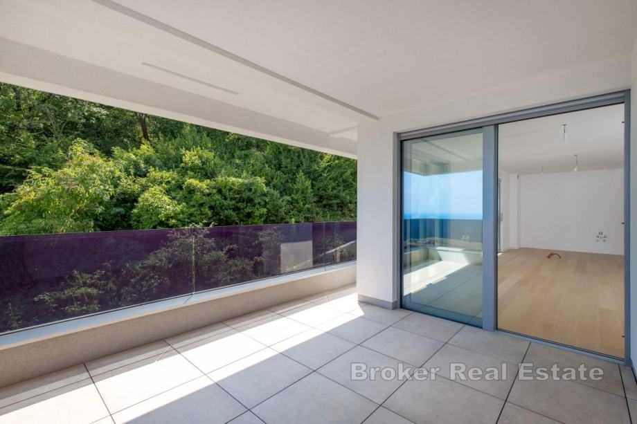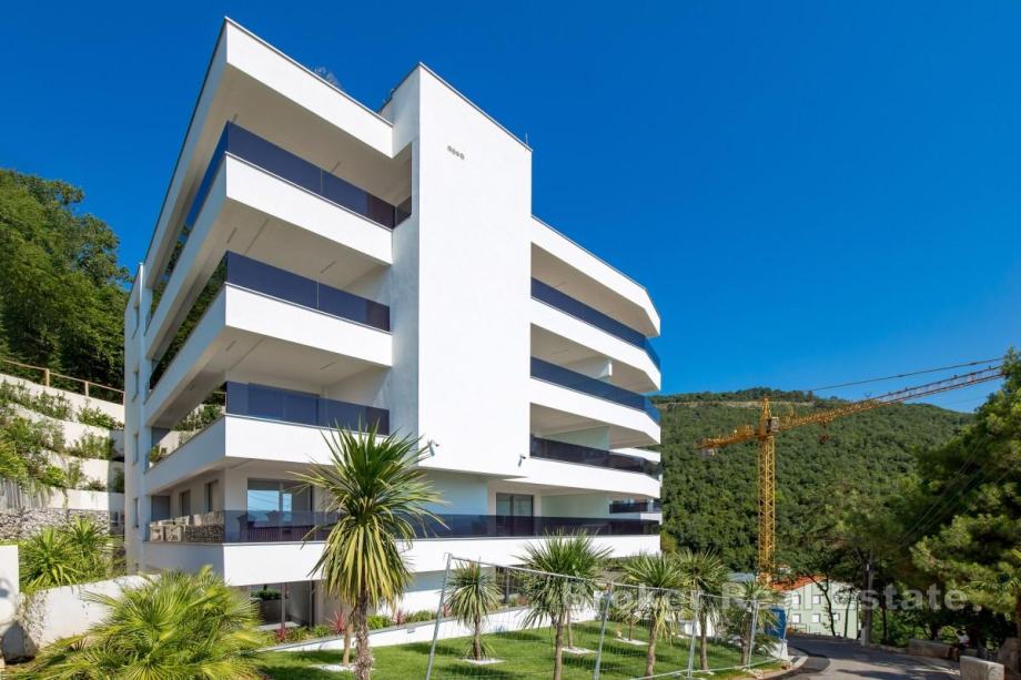U Opatiji se prodaje stan površine 81 m² koji se nalazi na drugom katu kvalitetne novogradnje s liftom i zajedničkim bazenom. Stan se sastoji od dvije spavaće sobe, dvije kupaonice, dodatnog toaleta, hodnika te kuhinje s blagovaonicom i dnevnim boravkom, a ukupna površina s dodatni prostorom iznosi 101 m². Stanu pripada balkon površine 20 m², dva garažna parkirna mjesta i spremište. Opremljen je fan coil sustavom za grijanje i hlađenje, aluminijskom stolarijom s električnim žaluzinama, vrhunskim sanitarijama i protuprovalnim vratima. Zgrada je moderno uređena i pruža visoku razinu udobnosti, a lokacija omogućuje mirno stanovanje u blizini svih sadržaja.