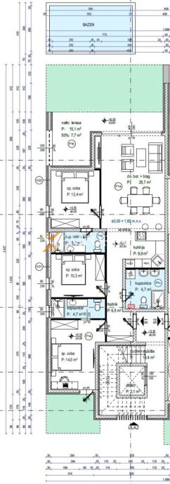 Osim toga, stanu pripada vrt od 115,40 m2, dva vanjska parkirališna mjesta te grijani bazen od 20,06 m2.