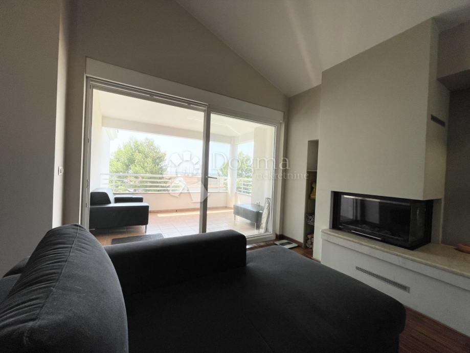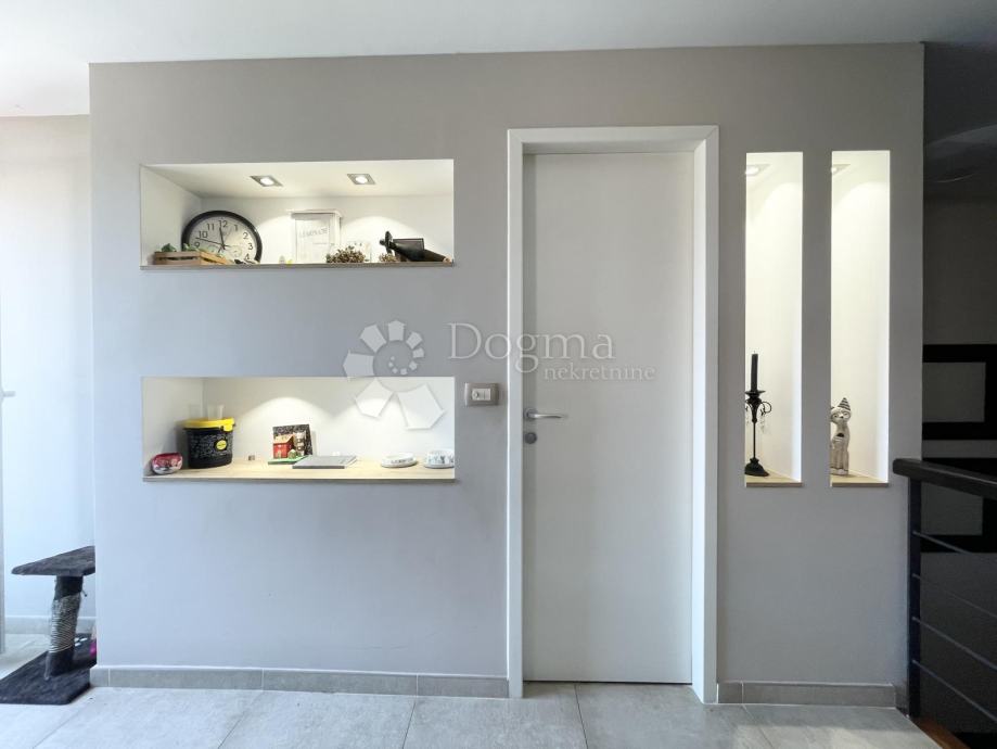 Prodaje se luksuzni stan prvi red do mora sa pogledom na more. Sastoji se od ulaznog prostora, open space kuhinje, blagovaonice i dnevnog boravka sa izlazom na terasu, spavaće sobe, wc-a te stepenica koje vode na donji kat. Na donjem katu se nalazi noćni dio sa dvije spavaće sobe sa svojim kupaonicama te prostorijom sa perilicom i sušilicom za rublje. Glavna spavaća soba raspolaže sa vlastitom terasom koja ima predivan pogled na more.