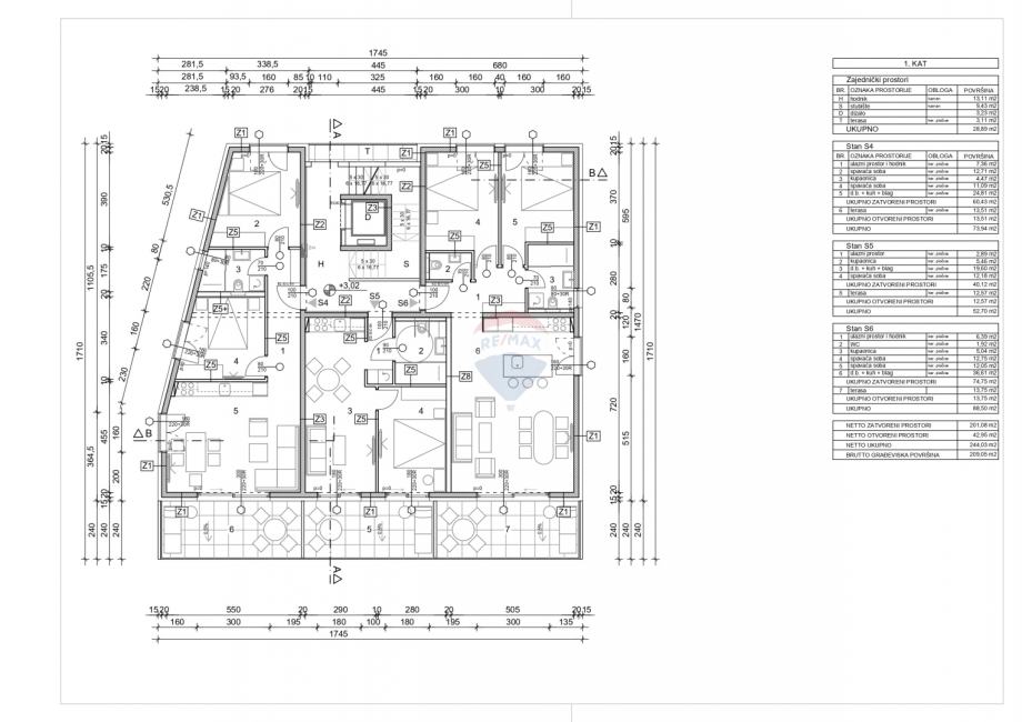 Prodaje se luksuzni dvosobni stan (S4) s pogledom na more u Primoštenu. Stan se nalazi na prvom katu novogradnje,a ima ukupnu površinu od 73.94 m2. Sastoji se od ulaznog prostora i hodnika, dvije spavaće sobe, kupaonice, dnevnog boravka, te kuhinje i blagovaonice. Ukupna površina zatvorenog prostora iznosi 60.43 m2. Stanu pripada i terasa površine 13.51 m2 kojoj se pristupa iz dnevnog boravka kroz široku staklenu stijenku. Sa terase i iz dnevnog boravka pruža se pogled na otvoreno more, te na gradić Primošten, a poglavito na njegov povjesni dio.
