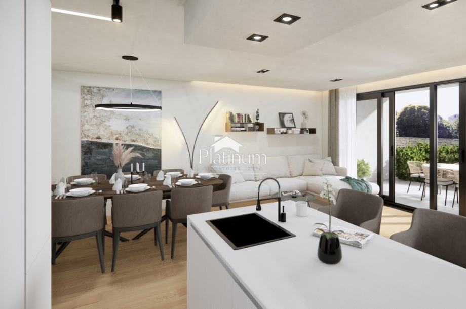U samom centru grada, na atraktivnoj lokaciji u blizini svih sadržaja i u neposrednoj blizini najljepših plaža prodaje se ovaj predivan luksuzni stan u izgradnji, smješten u prizemlju moderno građene zgrade.