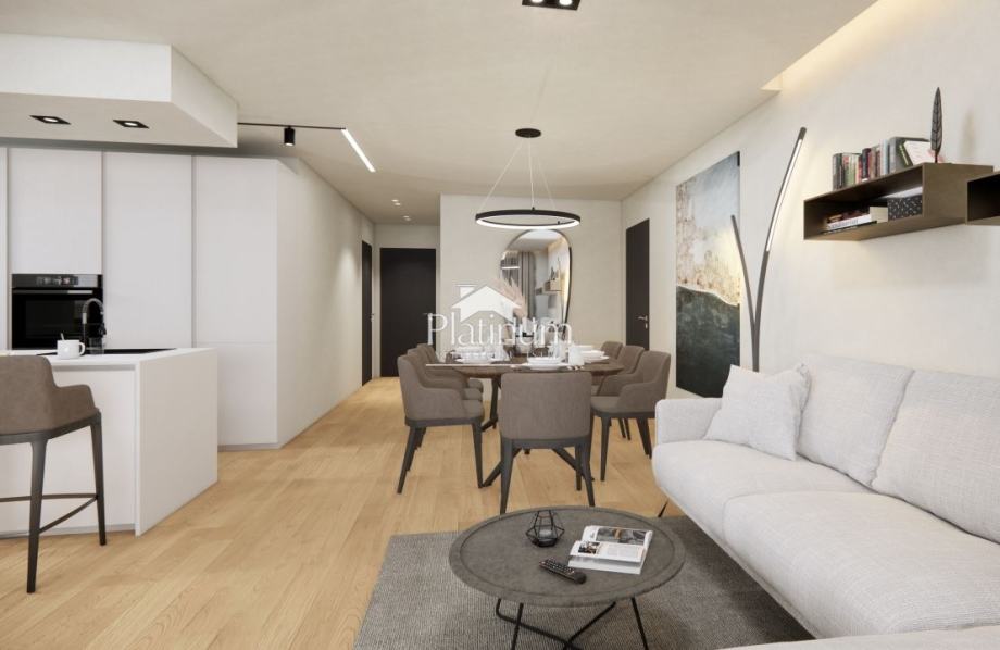 Kuhinja, blagovaona te dnevni boravak okrenuti su prema dnevnoj svjetlosti što stanu daje dodatnu veličinu i prostranost. Stanu pripada i ostava te parkirno mjesto u garaži.