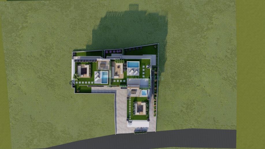 Krovna terasa 80,06 m² s bazenom 22 m², sunčalištem, ljetnom kuhinjom i WC-om + 2 garažna mjesta.