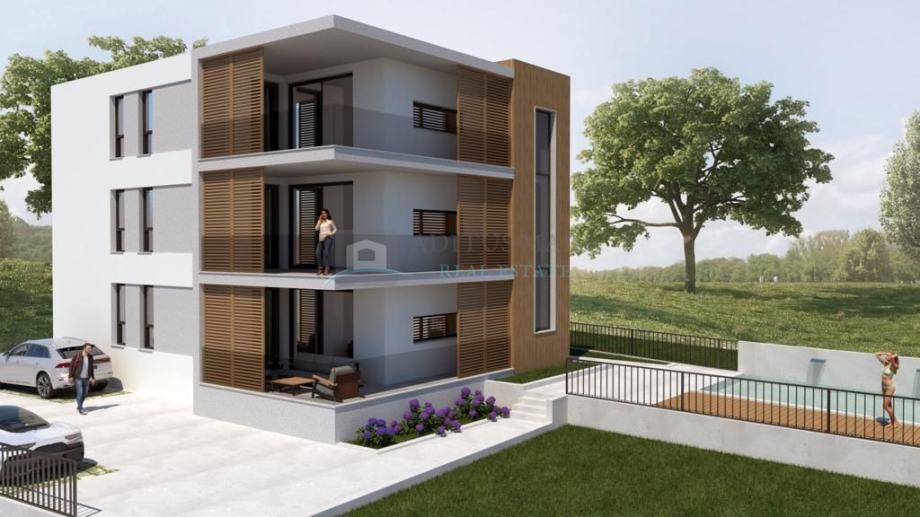 U dvorištu zgrade nalazi se bazen površine 37,60m2 te će bazen biti dostupan na korištenje svim stanovima. Također, svakom stanu pripada jedno parkirno mjesto.