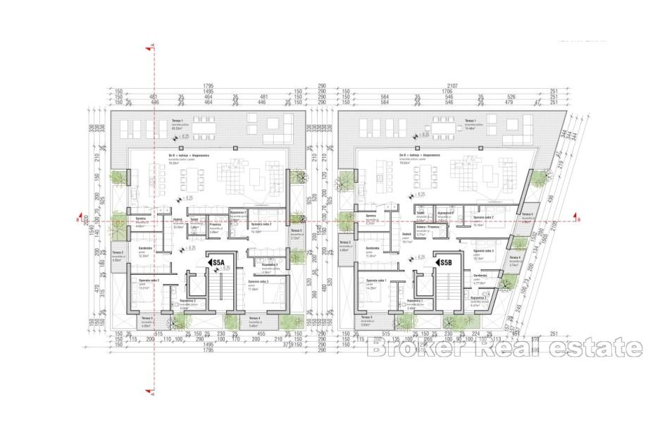 Površina apartmana iznosi 249 m2, a nudi izravan pristup liftom koji povezuje apartman s podzemnom garažom. Zgrada ima i zajednički bazen, prostrane sunčane terase i ugodne vanjske zone za objedovanje i druženje. Okružena je bogatim zelenim površinama koje stvaraju dodatni osjećaj privatnosti i ugode.
