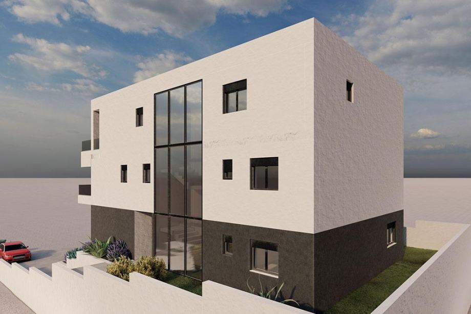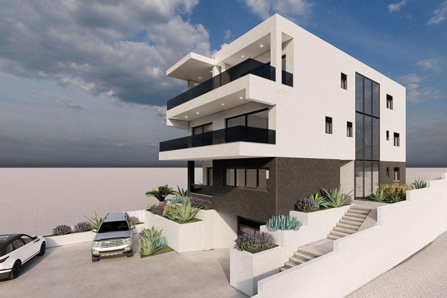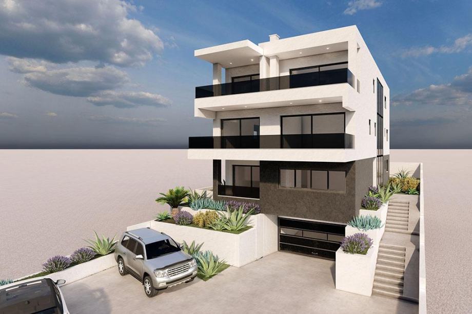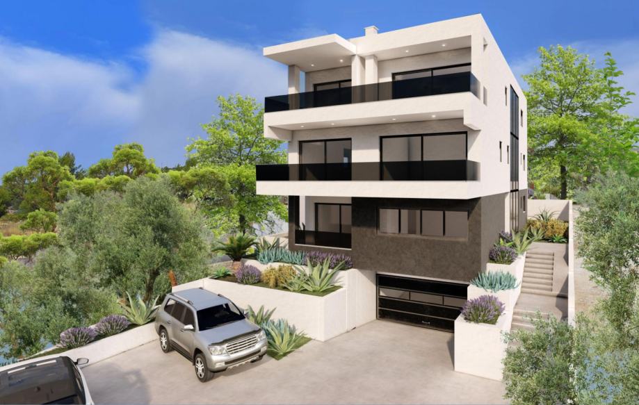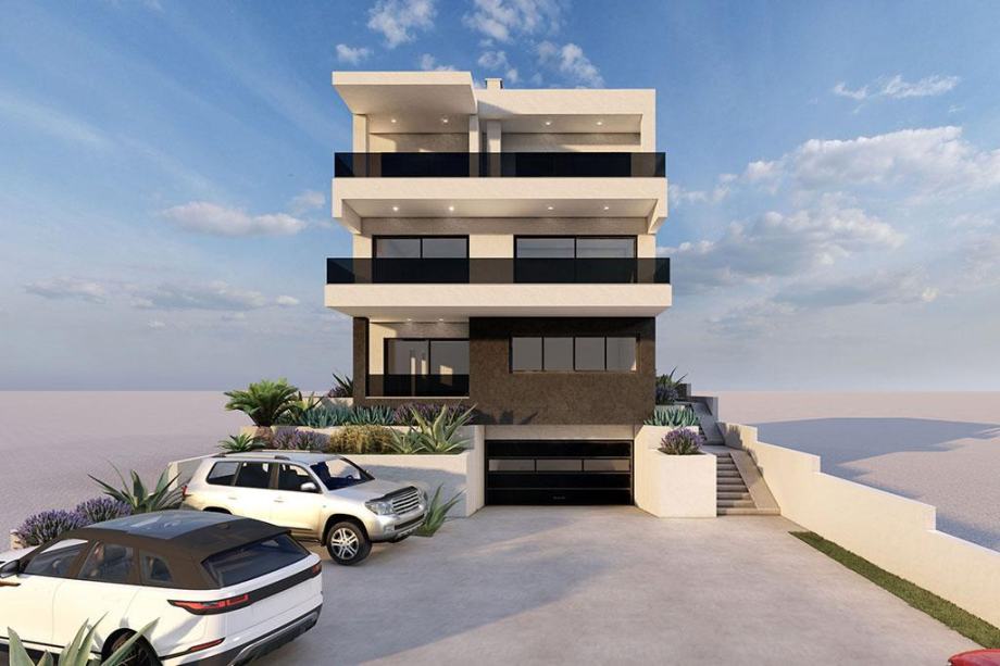 Prodaje se prostrani penthouse površine 135,45 m², smješten na drugom katu moderne novogradnje. Stan se sastoji od hodnika, prostranog dnevnog boravka (16,45 m²), kuhinje s blagovaonicom (32,55 m²), tri spavaće sobe (13,70 m², 12,65 m², 6,78 m²), dvije kupaonice (6,09 m² i 5,38 m²) te dodatnog WC-a (4,09 m²). Uz to, stan ima natkriveni balkon (15,88 m²) i nenatkriveni balkon (8,38 m²), koji pružaju predivan pogled na more. Stanu pripadaju dva garažna parkirna mjesta i spremište, a lift iz garaže vodi direktno u stan.