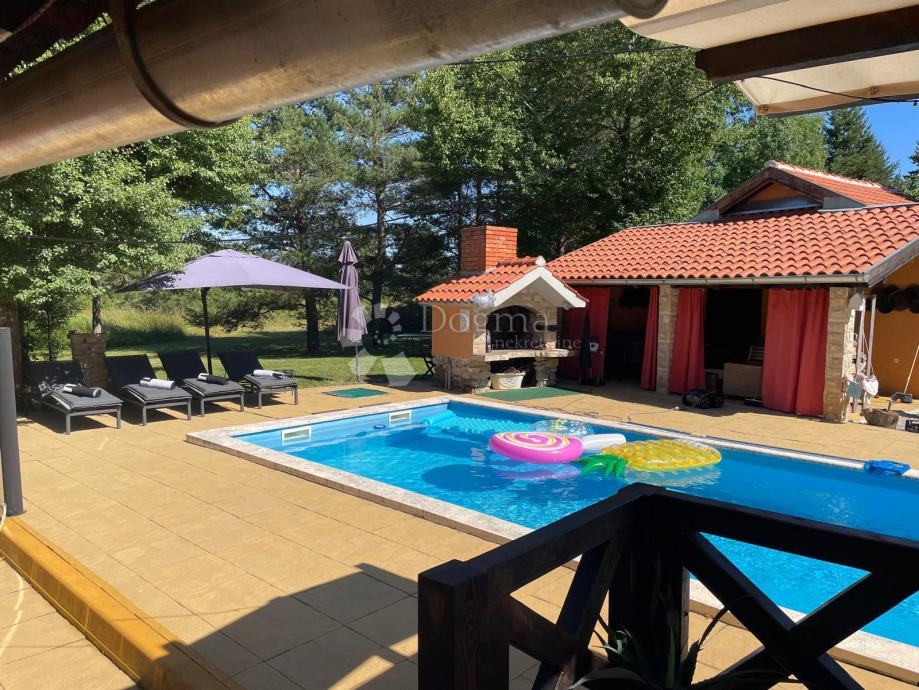 Pridaje se luksuzno imanje u selu na lokaciji između Gospića i Lovinca u oazi predivne prirode , mira i tišine a sastoji se od 2 kuće , bazena , velikog uređenog zemljišta od 10000 m2 - OD KOG JE DIO GRAĐEVINSKI I PROTEŽE DE UZ ŠUMU DO UCRTANOG DRŽAVNOG PUTA TAKO DA SE MOŽE GRADITI JOŠ DO 8 KUĆA U NIZU SA PRISTUPOM SLUŽBENOM PUTU !!!!