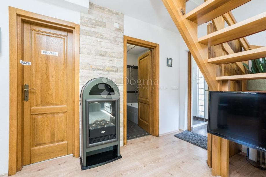 Kuća s pomoćnim objektom ( JOŠ JEDNNNA MANJA KUĆA ) su kompletno, kvalitetno obnovljene od temelja do krova, korišteni kvalitetni materijali, izolacije, termoizolacije, vrhunski crijep, sva drvenina, stolarija , štokovi rađeni od hrastove građe stare 70 godina.