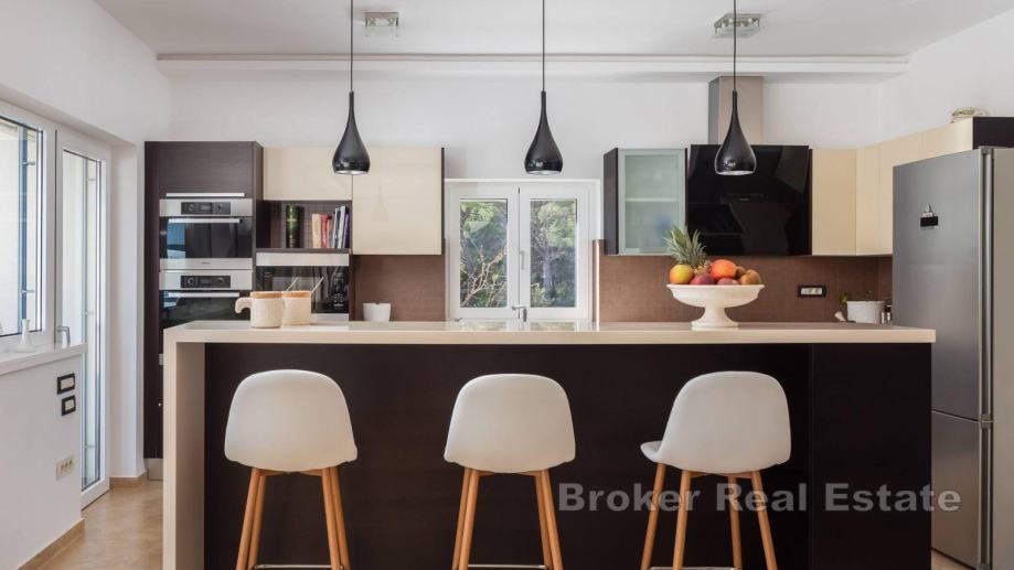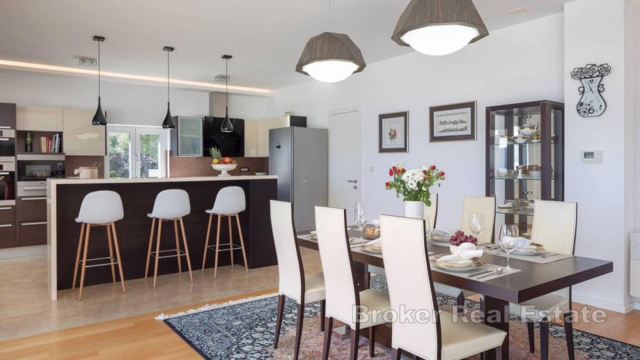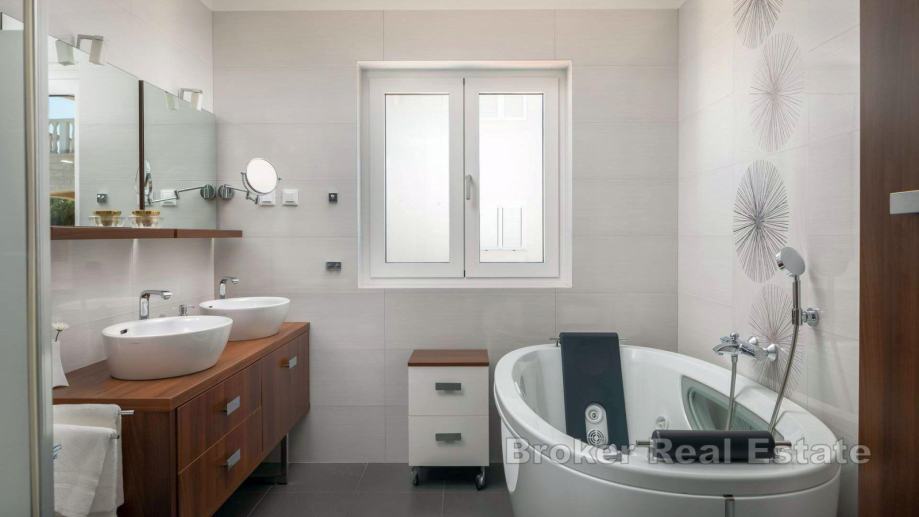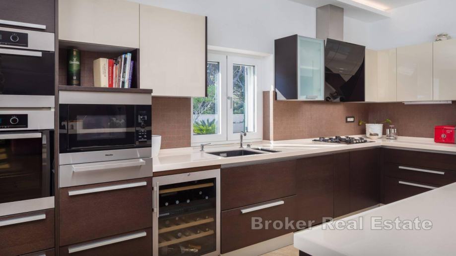 Vanjski dio je obogaćen sa infinity bazenom sa sunčalištem, vanjskom kuhinjom i blagovaonicom na otvorenom.
