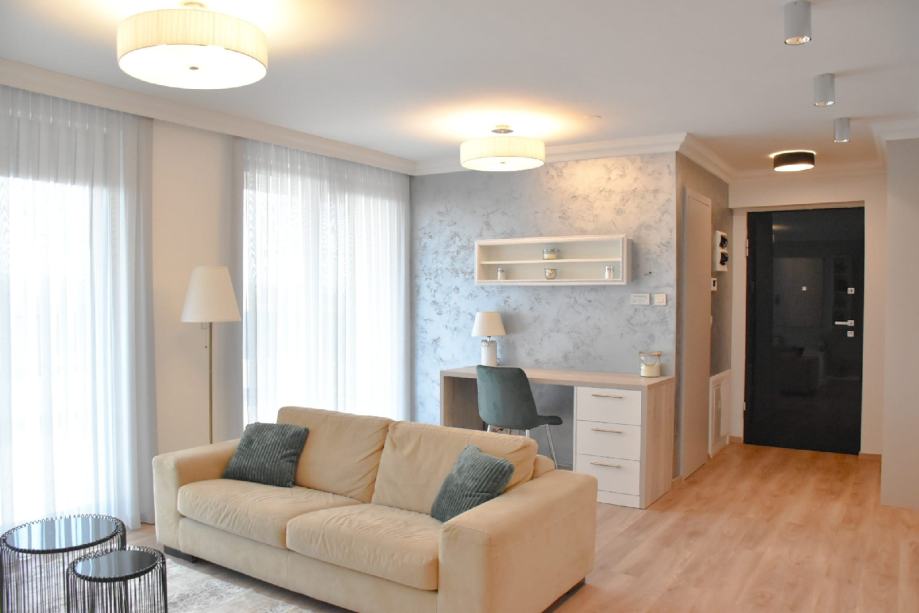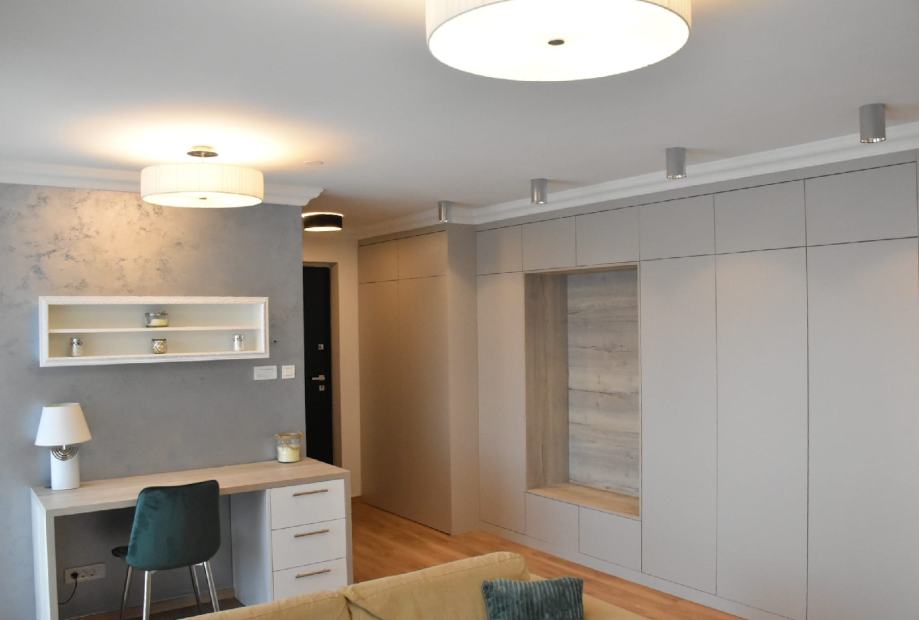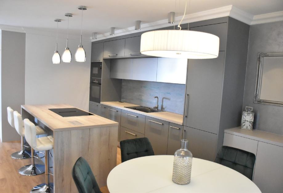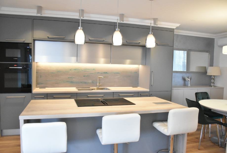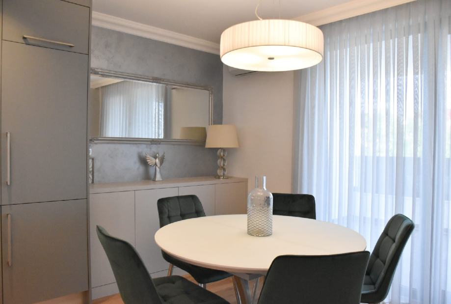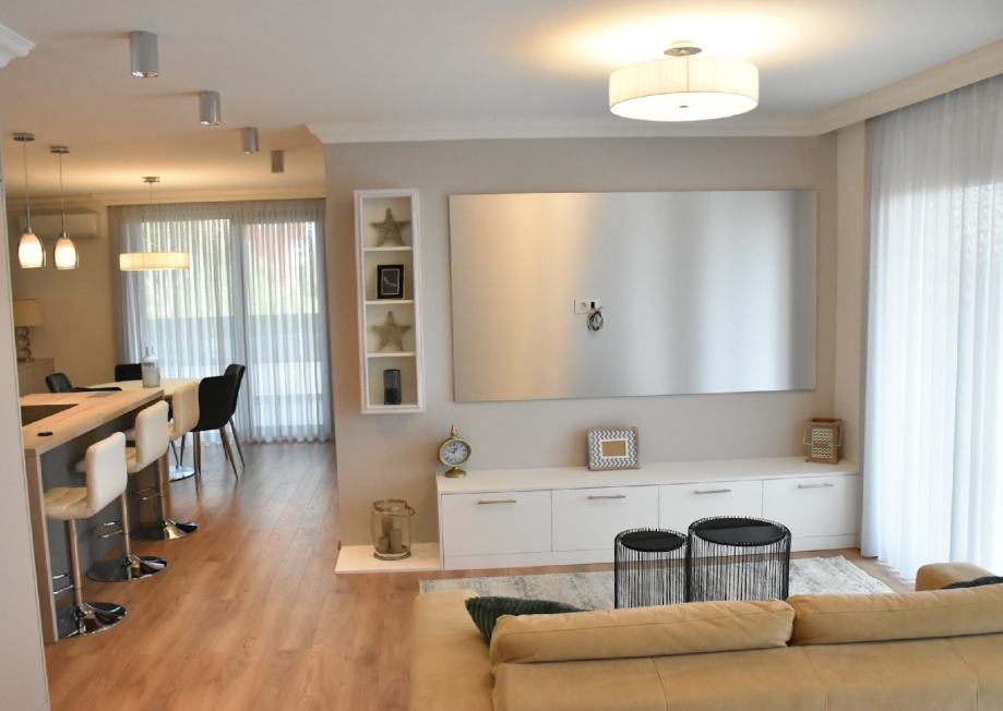 Stan je potpuno namješten i odmah useljiv, spreman za stanovanje. Sav namještaj rađen i dizajniran po mjeri.