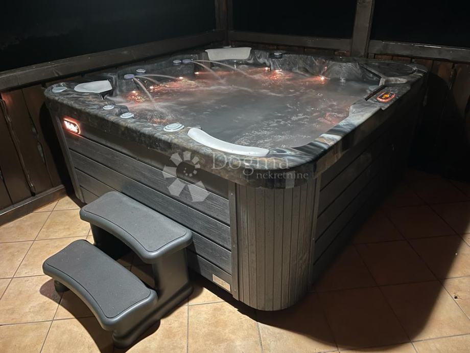 Na natkrivenoj terasi nalazi se jacuzzi s pogledom na kompletan Ranč uz jacuzzi nalazi se sjeeća garnitura, u zasebnoj prostoriji na terasi nalazi se sauna, teretana , garaža i pečenjara.