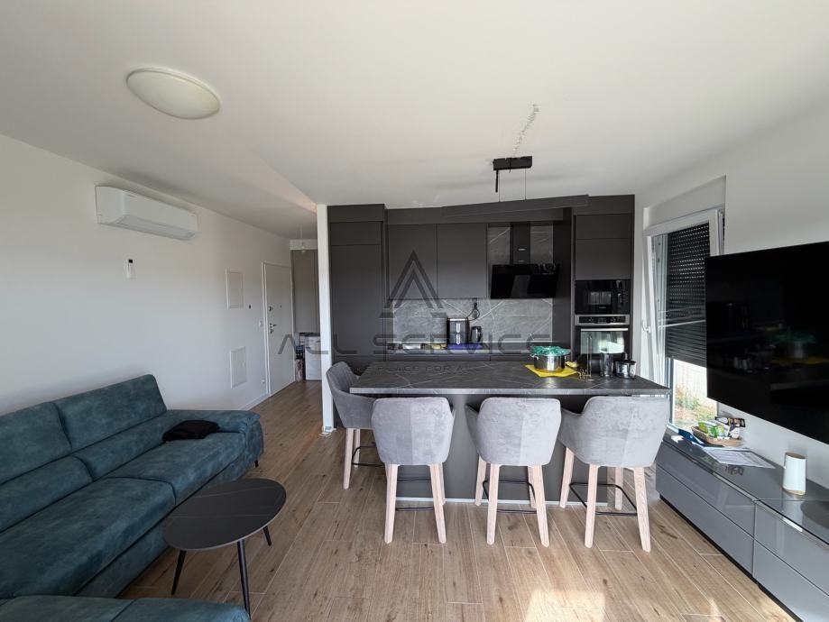 Stan je opremljen najkvalitetnijim materijalima, namještaj i ostali elementi rađeni isključvo po mjeri, Danckuchen kuhinja po mjeri, podno grijanjem, protuprovalna vrata, videoportafon, klima uređaj, dakle pomno dizajniran do posljednjih detalja.