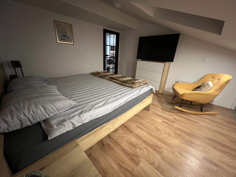 Stan se sastoji od tri sobe za spavanje/po potrebi treća soba može bit ured ili mala teretana( ovisno o dogovoru), sve prostorije opremljene su smart TV sa 1000 programa.