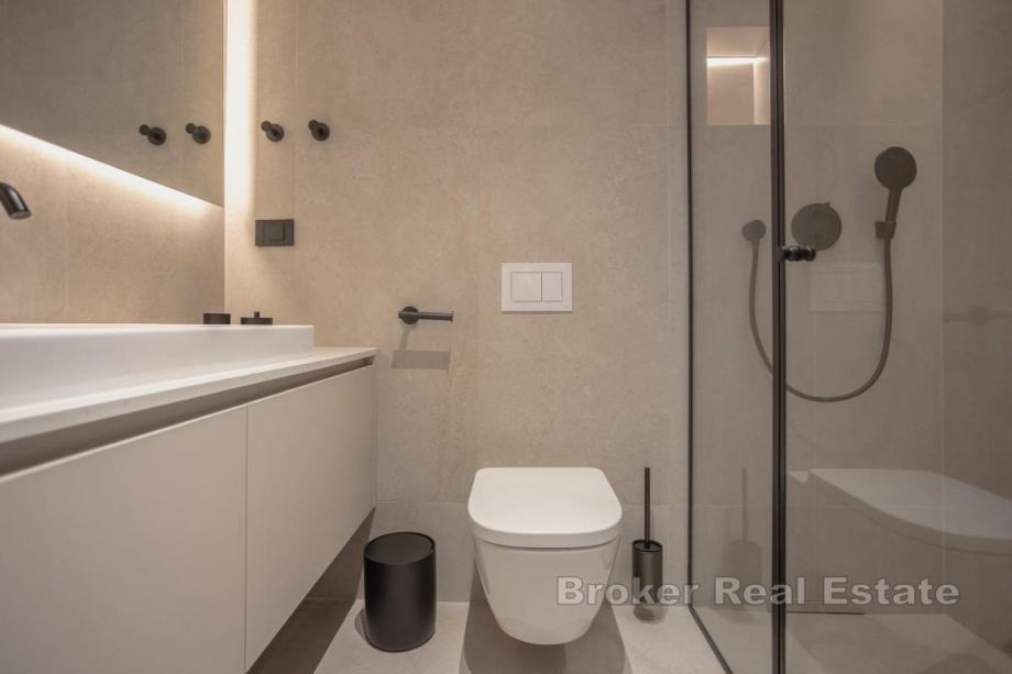Na jednoj od najpoželjnijih lokacija u Splitu, nalazi se luksuzno uređen dvosoban stan koji spaja suvremenu eleganciju, vrhunsku opremu i udobnost ukupne stambene površine 82m2. Zgrada u kojoj se stan nalazi izgrađena je prema najvišim standardima gradnje. Nekretnina odiše sigurnošću i privatnošću, te je opremljena sustavima poput videonadzora objekta, recepcije…