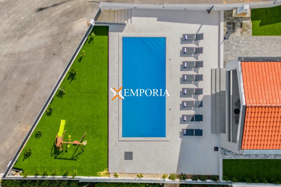 Površina kuće iznosi 204,94 m2. Površina bazena je 36 m2. Zemljište na kojem je kuća izgrađena površine je 666 m2. Ukupno su na raspolaganju 3 parkirališna mjesta, od toga jedno u garaži.