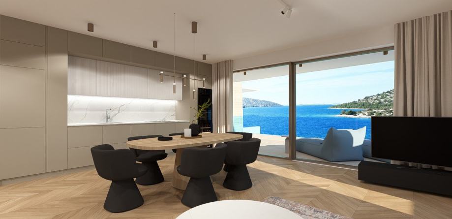 Na prodaju je ekskluzivan trosobni stan u prizemlju korisne površine 110,69 m², smješten u jedinstvenoj zgradi svega 20 metara od mora u turističkom mjestu Grebaštica, nadomak Šibenika. U krugu od 80km nalaze se dvije međunarodne zračne luke Split i Zadar. Ovaj projekt novogradnje predstavlja pravu rijetkost na tržištu, nudeći luksuz i udobnost na najvišoj razini. Stanovi u ovoj zgradi pružaju neometan panoramski pogled na more i okolne otoke, a svaki stan posjeduje i svoj privatni bazen, čime se osigurava jedinstveno iskustvo.