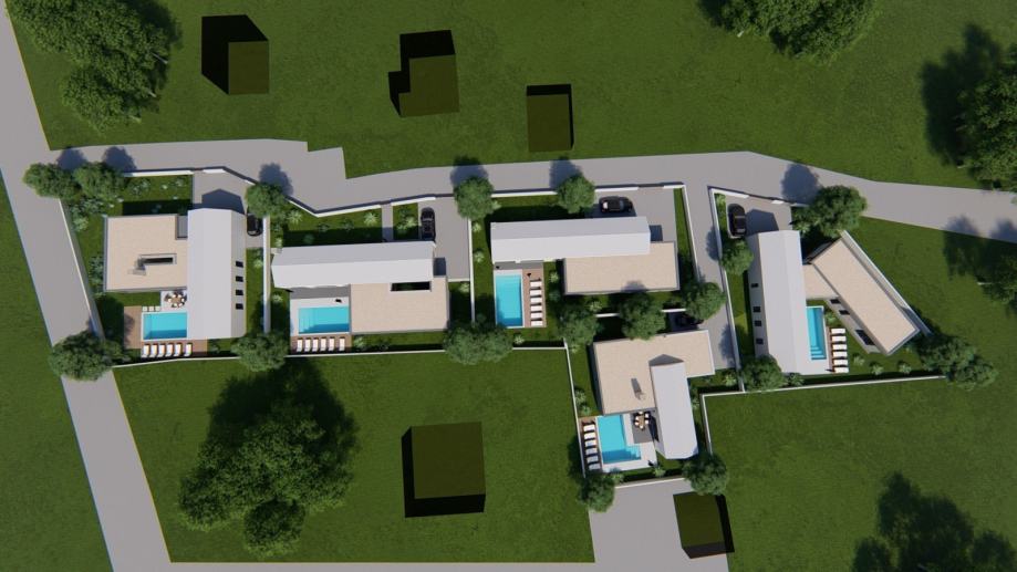 Projekt se sastoji od ukupno 5 vila prizemnica od kojih se svaka nalazi na parceli ukupne površine 550 m2, dok neto površina iznosi 200 m2.