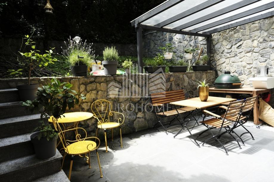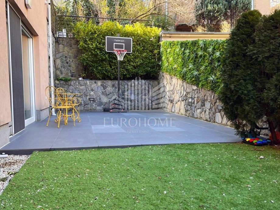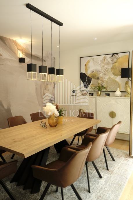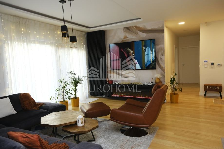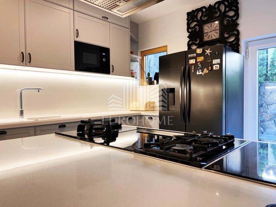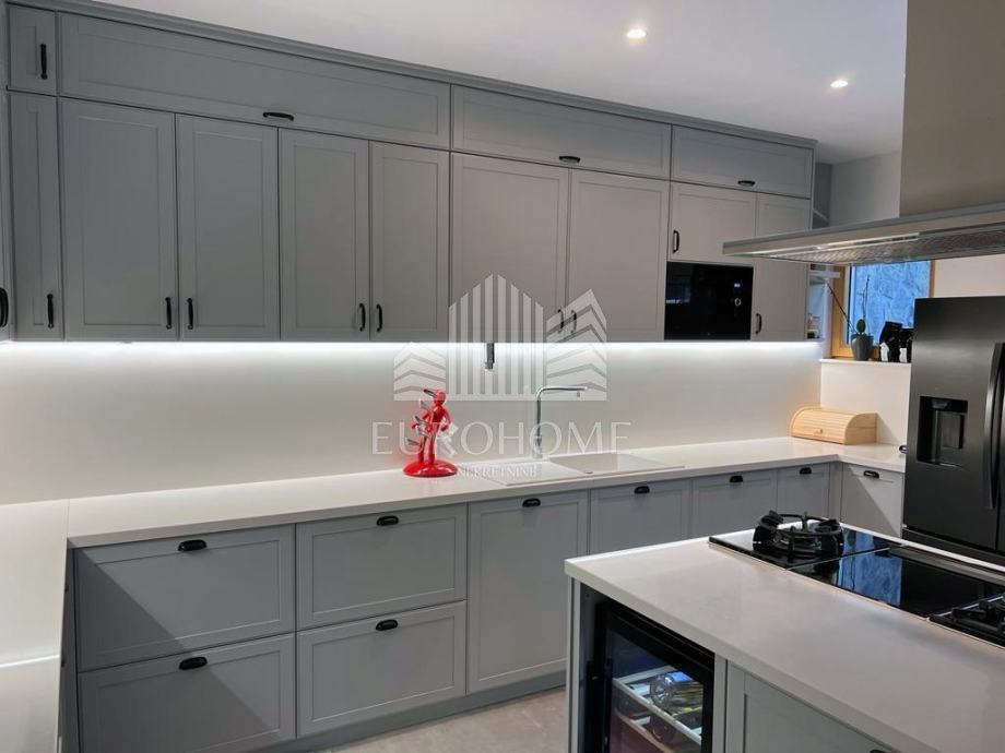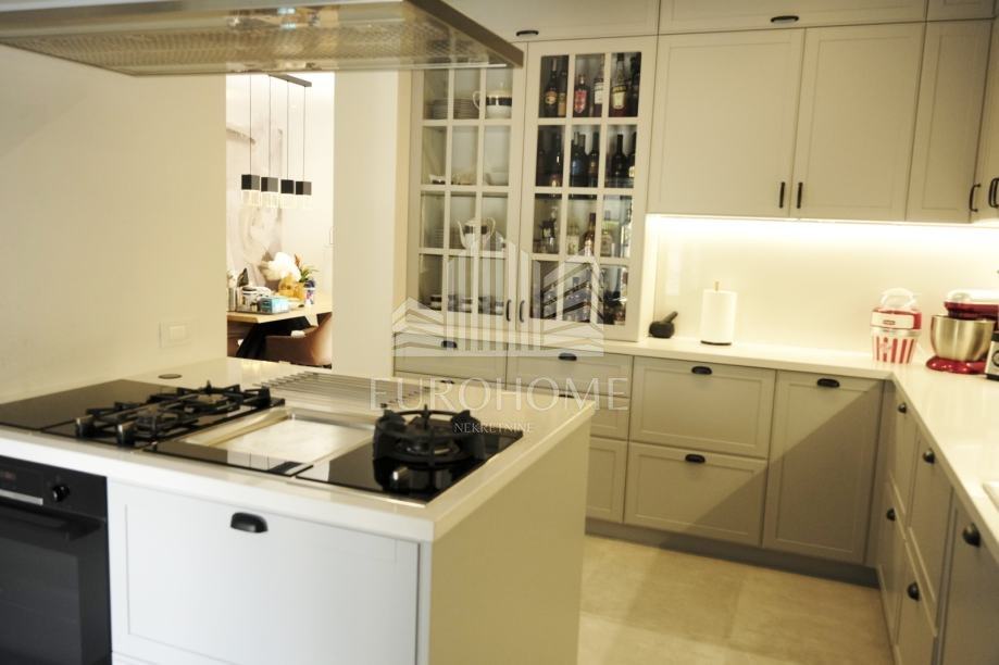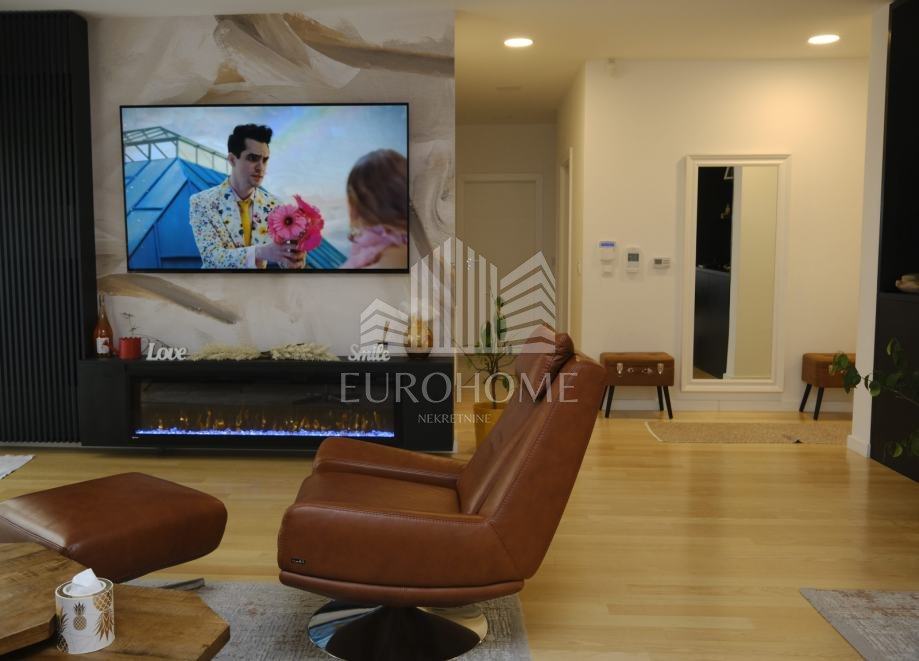 Stan je kompletno namješten, sadrži etažno plinsko grijanje, klime, videonadzor, alarmni sustav, garažna daljnska vrata Horman, lift Schindler, natkrivenu lođu, veliki vrt, dvije terase, aluminijske električne rolete, protuprovalna vrata, stolariju renomiranog proizvođača Internorm, troslojna iso stakla, prvoklasnu talijansku keramiku, puni parket jasen, Prestige kuhinju od 10 metara.