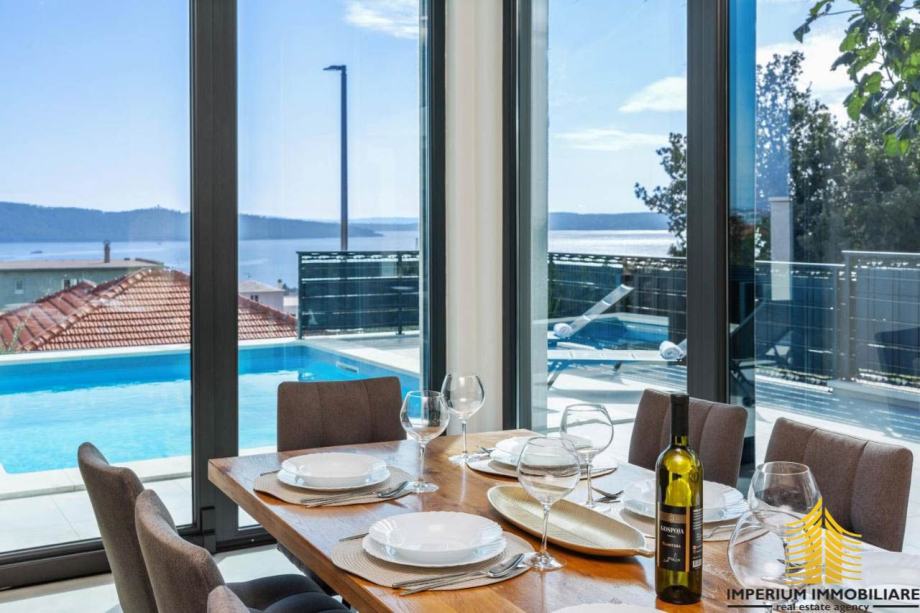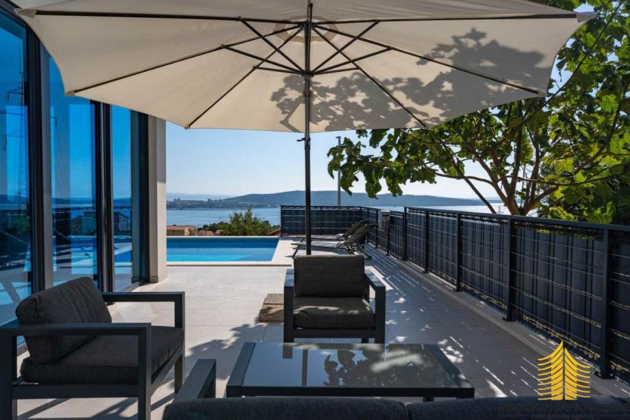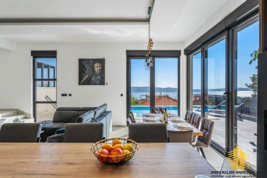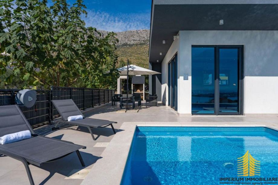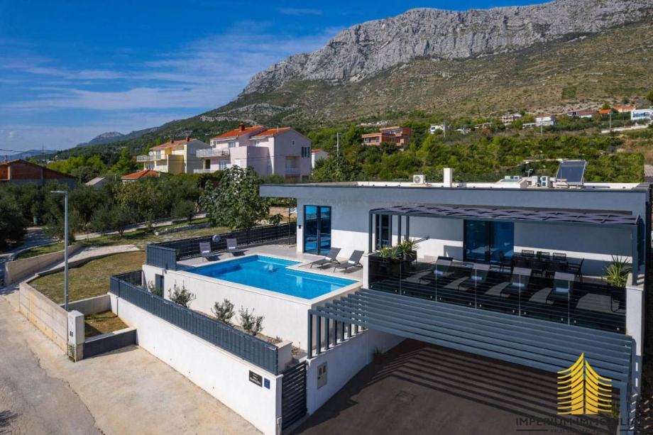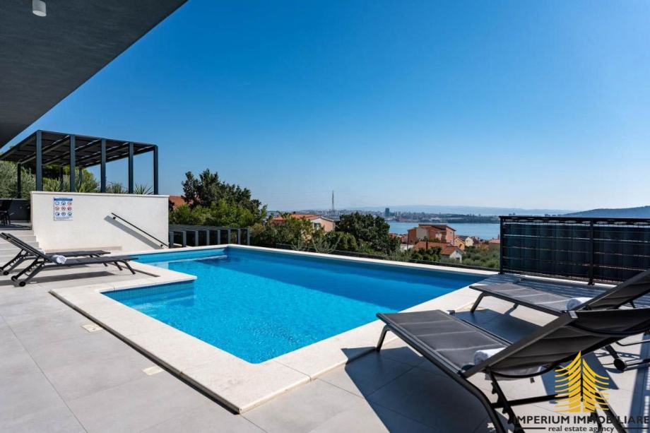 Prodaje se sofisticirani novi rezidencijalni objekt s privatnim bazenom i panoramskim pogledom na more. Ističe se kao neosporni dragulj među luksuznim vilama u Kaštelima. Ova vila smještena je u idiličnom okruženju i predstavlja spoj suvremenog dizajna, vrhunskih sadržaja, mirne lokacije i predivnog pogleda.