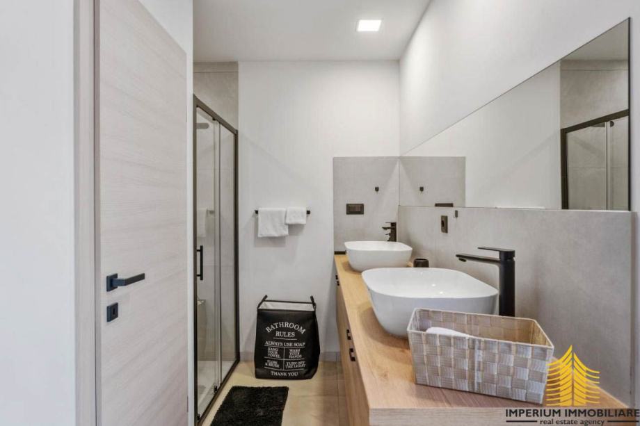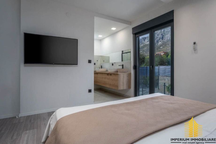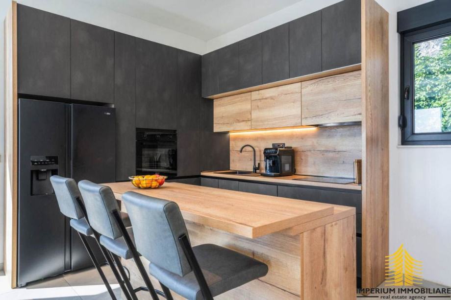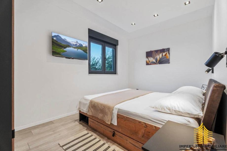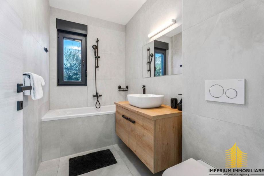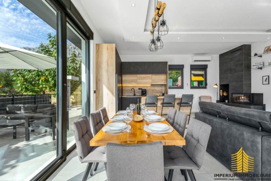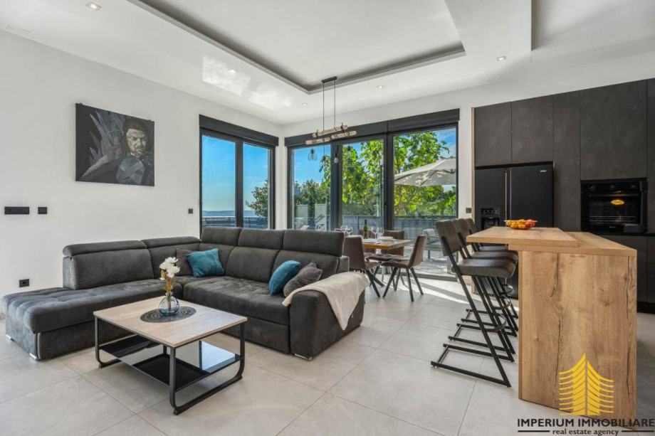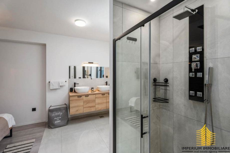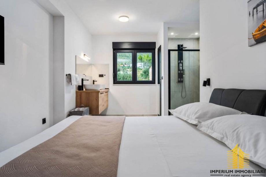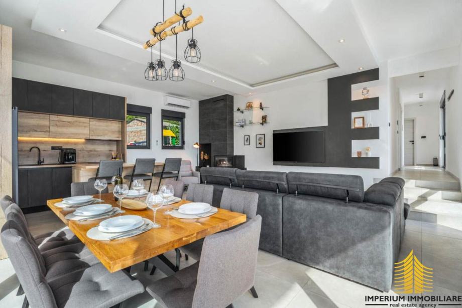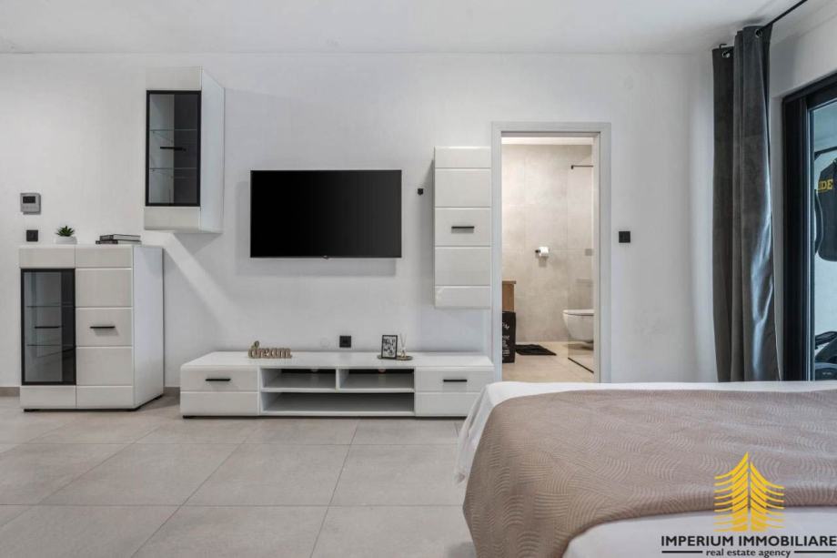 Interijer ove vile odražava suvremeni dizajn s prozračnim prostorima koji istovremeno oduševljavaju i pružaju udobnost. Elegancija i funkcionalnost prostora stvaraju sklad s mediteranskim šarmom, čineći vilu idealnim mjestom za opuštanje i uživanje u luksuzu.