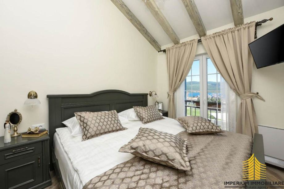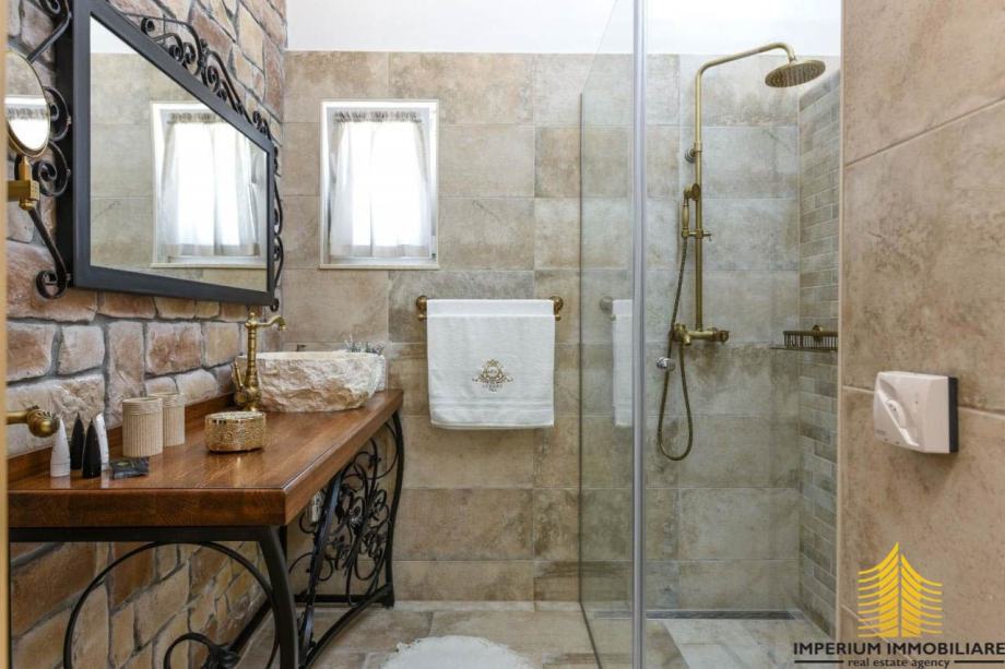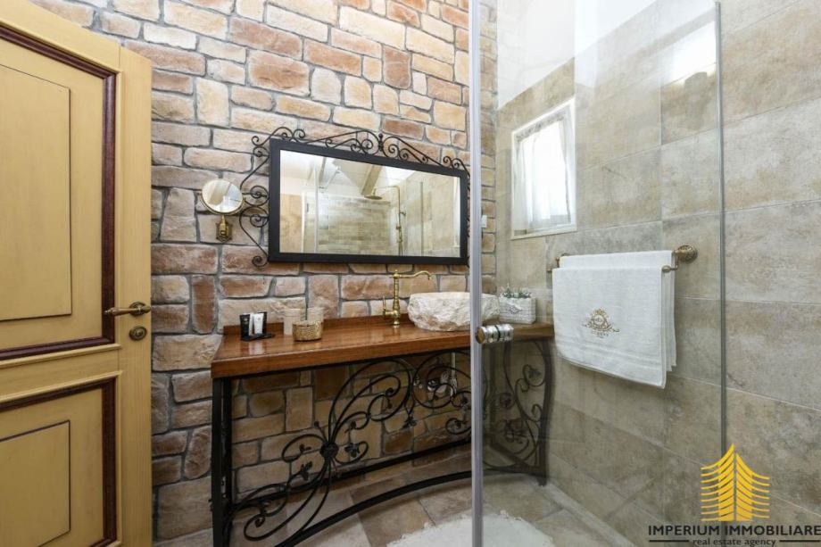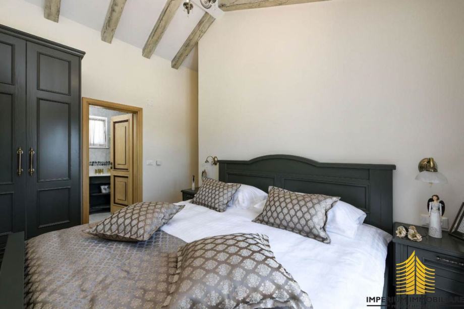 Odlikuje se spojem rustikalnog šarma i profinjenog luksuza, a interijer krasi profinjen dekor, uključujući vrhunski namještaj, izložene kamene zidove te stropne grede.
