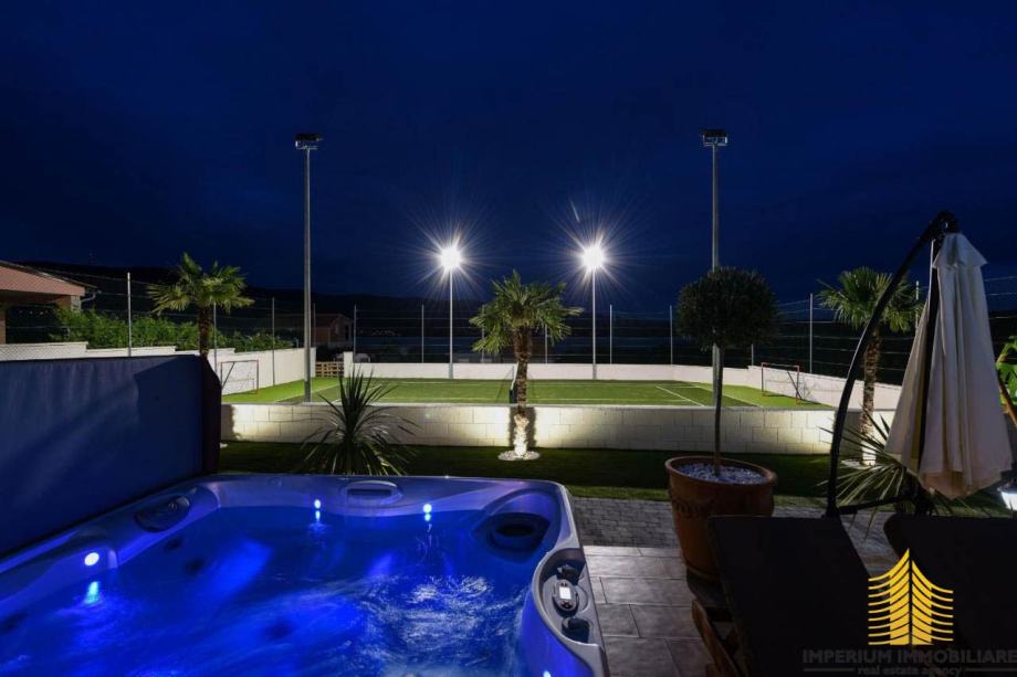 Osim što je smještena pored palmi koje stvaraju poseban ambijent, od dodatnih detalja možemo istaknuti i vanjski bazen, jacuzzi te saunu.