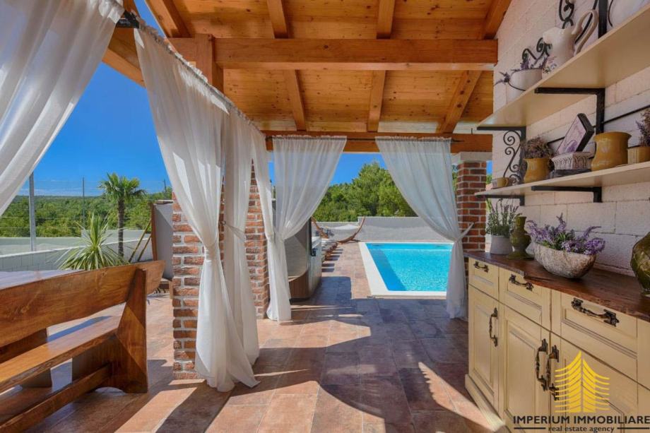 Predstavljamo vam izuzetnu luksuznu vilu izrađenu u ekskluzivnom mediteranskom dizajnu. Smještena je u mjestu Pridraga, u blizini Zadra.