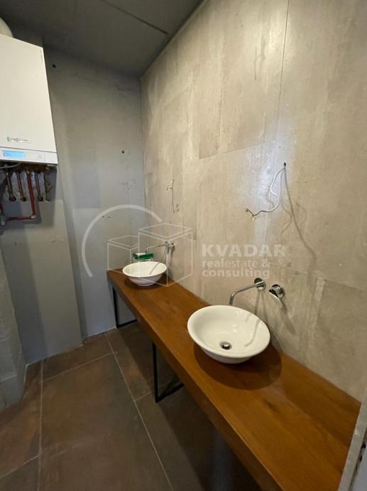 U prostoru je postavljeno podno grijanje i ventilokonvektori - moderni sustav grijanja i hlađenja.