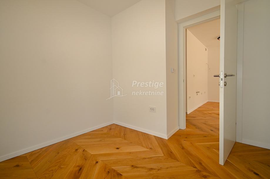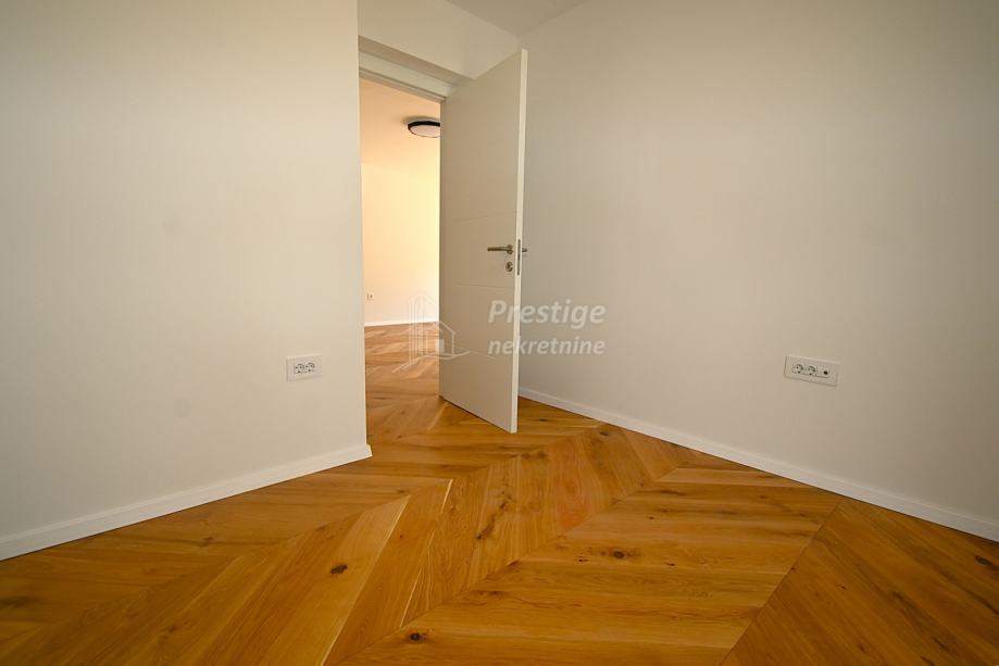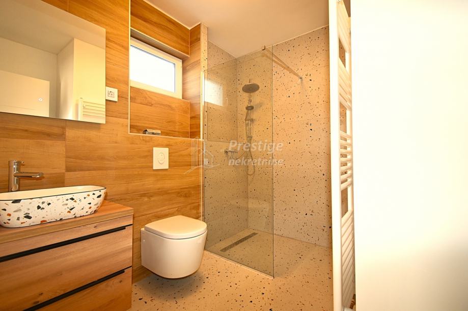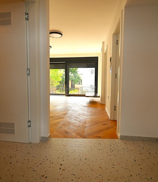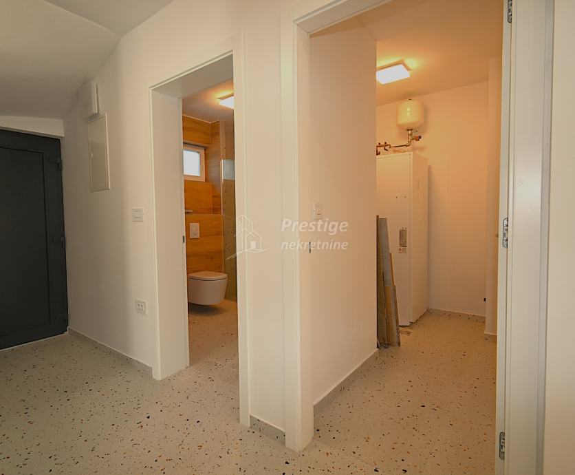 Stan u prizemlju novogradnje, ukupne neto površine 72,6 m². Sastoji se od 2 spavaće sobe, open space dnevnog boravka s kuhinjom i blagovaonicom, kupaonice s wc-om, izbe, hodnika i unutarnjeg spremišta.