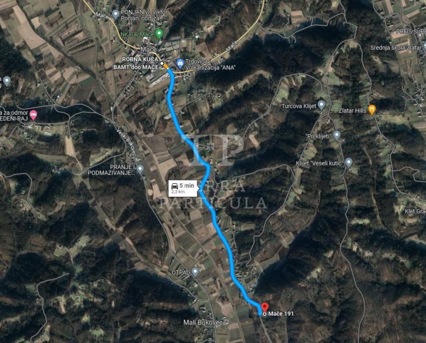 Prodajemo zemljište površine 9.179 m² koje se sastoji od pet katastarskih čestica od kojih su dvije u zoni gradnje (2.852 m²), a jedno od njih je šuma površine 4.327 m². Nalazi se uz asfaltnu cestu u blizini ruševne stare kuće na adresi Mače 191, Mače.