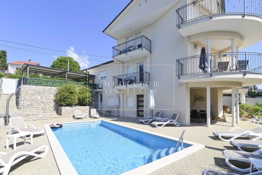 U ponudi Mediator nekretnina pronađite prekasnu i jedinstvenu vilu površine 380 m², smještenu na mirnoj i atraktivnoj lokaciji u Iki, s uređenom okućnicom od 700 m². Ova luksuzna nekretnina oduševit će vas svojim panoramskim pogledom na cijeli Kvarnerski zaljev i otoke te prvoklasnim uređenjem koje zadovoljava i one najzahtjevnije.