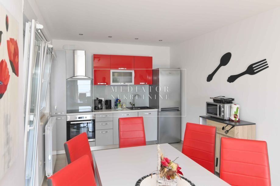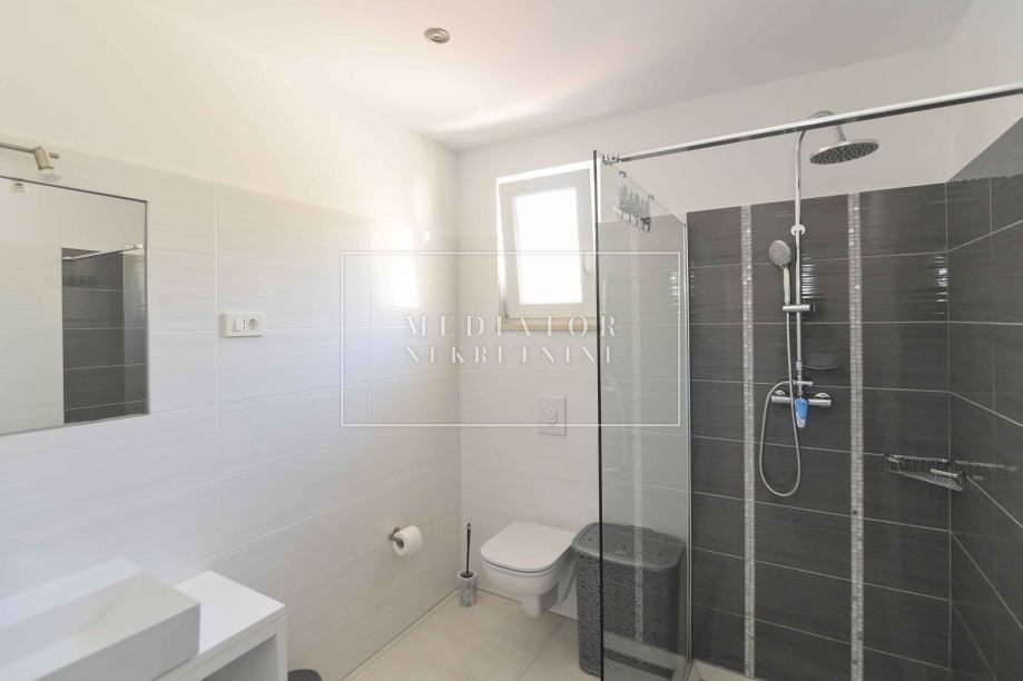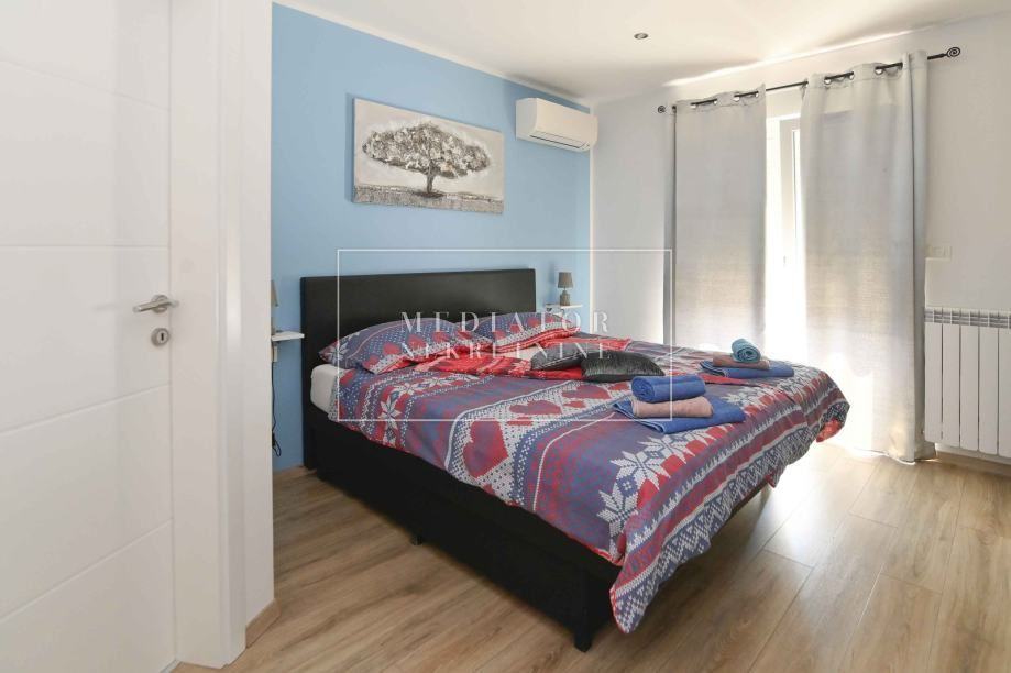 Na pravom i drugom katu se nalazi po jedan apartman s dnevnim boravkom i kuhinjom, tri spavaće sobe i tri kupaonice te dva prostrana balkona.