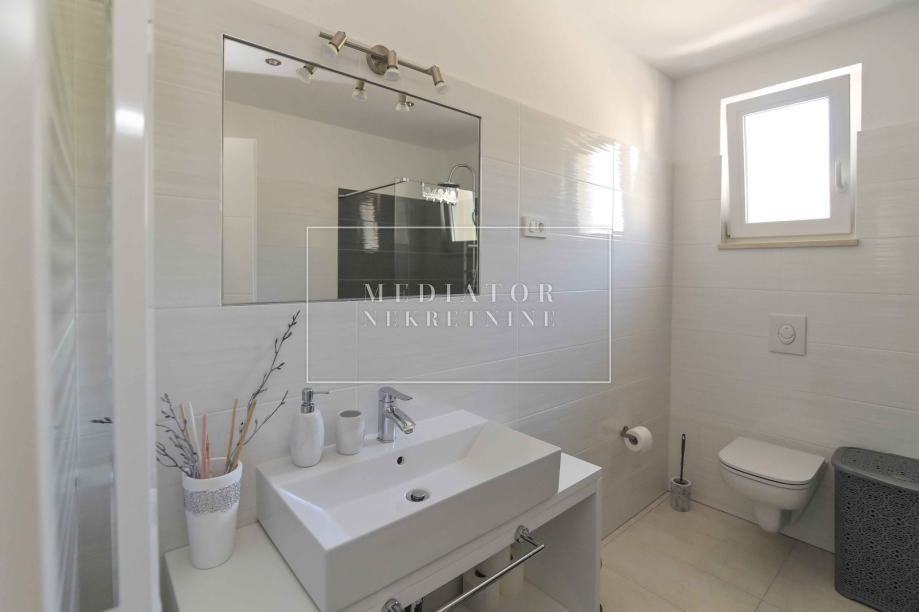 Okućnica je uređena i zasađena mediteranskim biljem, s bazenom i prostorom za roštilj na vrtnoj terasi, što omogućava savršen ambijent za druženja i opuštanje.