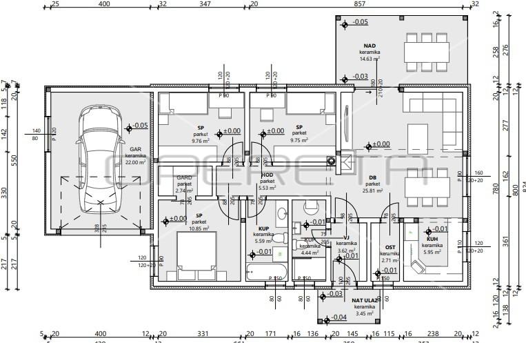 "Stambena zgrada će imati tlocrt pravokutnog oblika dimenzija 12,88 x 8,24 m, s garažom