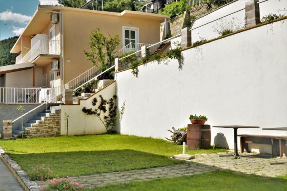 Iza kuće nalaze se 2 vrta kaskadnog oblika od kojih je na gornjoj etaži predviđena izgradnja bazena te ljetna kuhinja, veliki roštilj s prostorom za sjedenje i druženje.