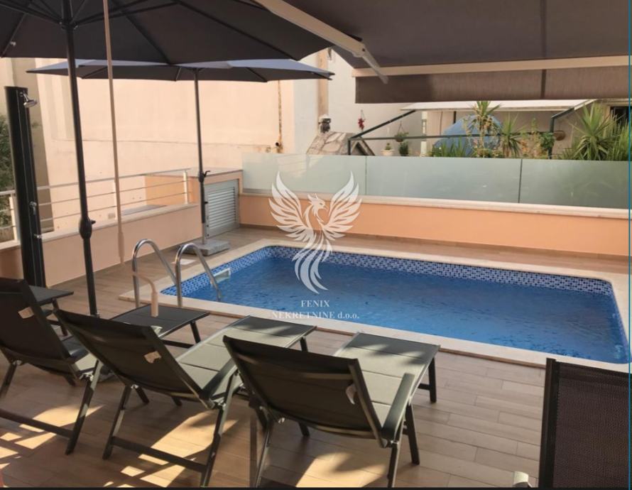Prodaje se izvrstan stan u samom centru Makarske, u blizini svih važnih sadržaja za život kao i atrakcija. Stan je izuzetna prilika zbog svoje pozicije, ali i činjenice da ima vlastito dvorište s grijanim bazenom kao i vlastito parking mjesto, što nije često u slučaju nekretnina u centru grada. Stan se sastoji od ulaznog prostora, hodnika, kuhinje s blagovaonom, dnevnog boravka, dviju spavaćih soba, kupaonice, wc-a i prostranog dvorišta na kojem se nalazi terasa i bazen. Zgrada u kojoj se stan prodaje je izgrađena 2014. godine, radi se o kvalitetnoj novogradnji koja ima i lift.