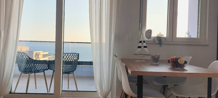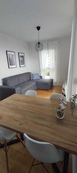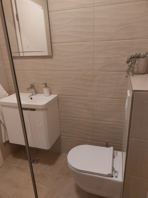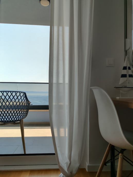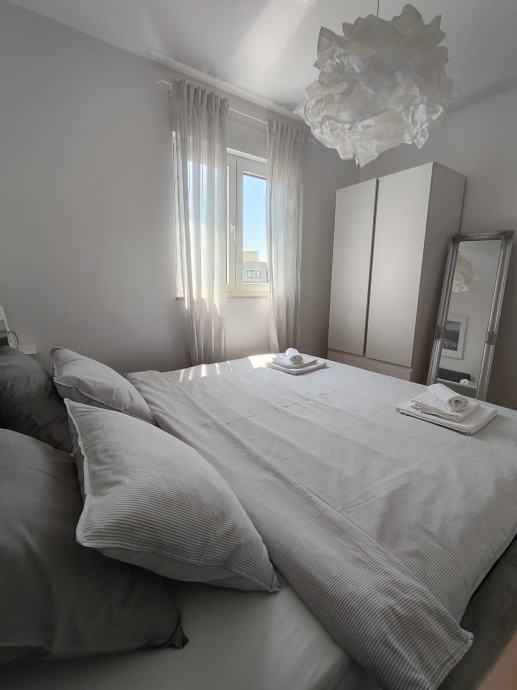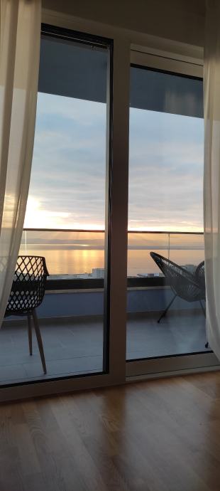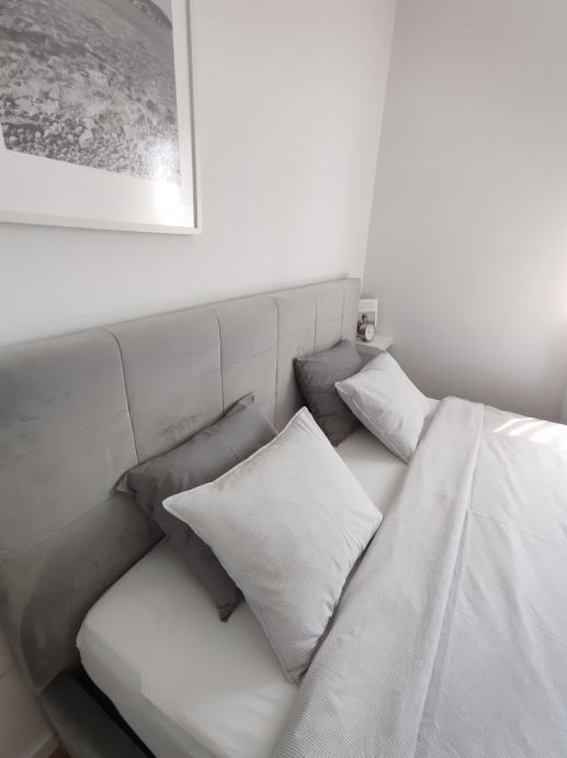 Šarmatni mali stan s pogledom na more. Idealan za samce ili par. 40m² u novogradnji, moderno uređen, u potpunosti opremljen. Odvojena spavaća soba, 2x klima uređaj, prostran balkon, parking mjesto, ostava u prizemlju. Ispred zgrade stanica Điro. Dugoročni najam, depozit u visini mjesečnog najma, nema agencijske provizije, potpis ugovora kod JB. Mjesečni najam 700EUR bez režija.