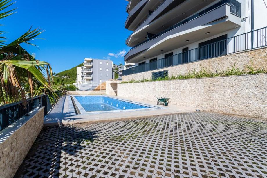 Radi se o luksuznom kompleksu od tri zgrade s atraktivnim sadržajima za uživanje. U južnom prizemnom dijelu s pogledom na more nalaze se bazen, jacuzzi, elegantan bar i dječja igraonica, što ovo čini idealnom investicijom za obitelji i turistički najam visoke kvalitete.