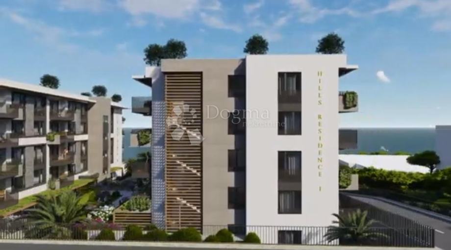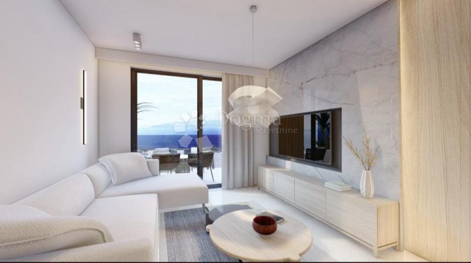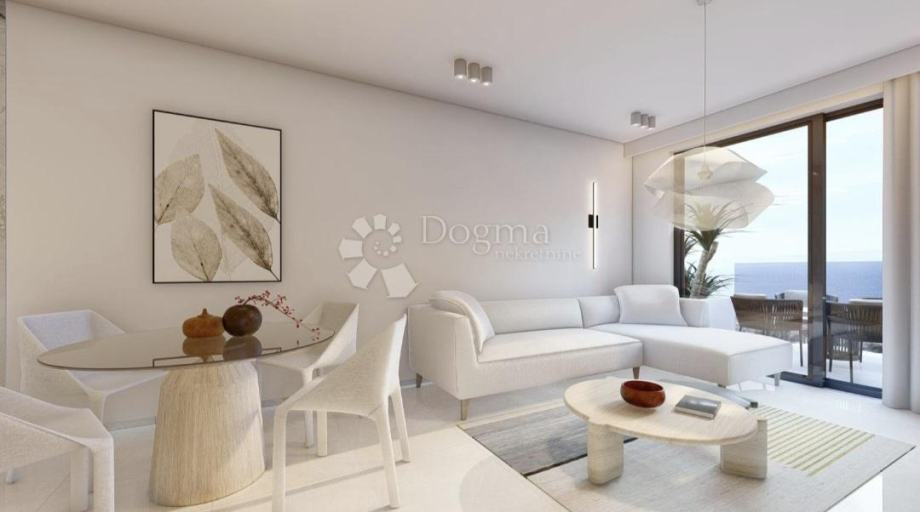 Stan se sastoji od ulaznog prostora, WC-a, open space kuhinje, blagovaonice i dnevnog boravka s izlazom na balkon koji nudi prekrasan pogled na more i grad. Tu su i dvije spavaće sobe te potpuno opremljena kupaonica.