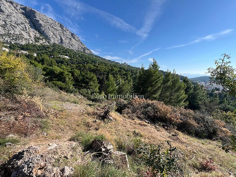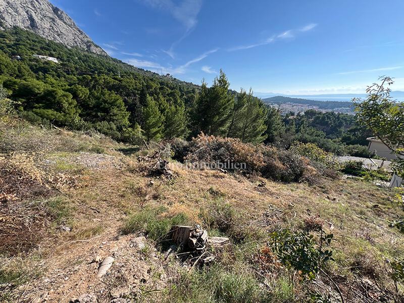 Povoljno građevinsko zemljište u Makarskoj, površine 1495 m2, s prekrasnim pogledom na more i otoke.