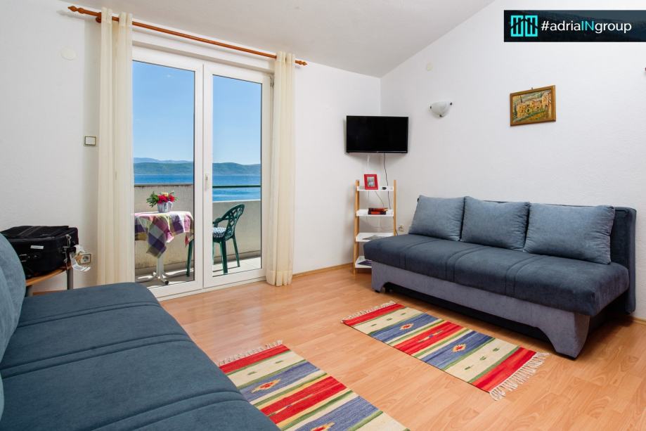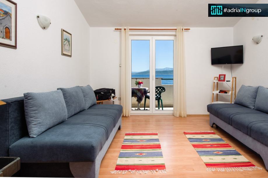 In the beautiful town of Igrane, on the Makarska Riviera, a comfortable three-bedroom apartment is for sale located first row to the sea, with an incredible open view of the sea and the beach.