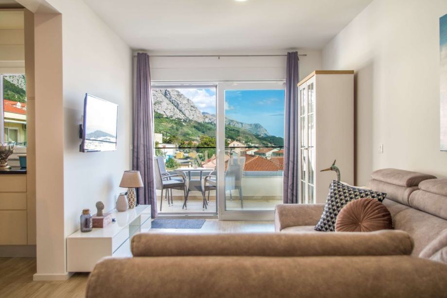 Makarska, Luksuzno namješten dvosoban stan, terasa, pogled (prodaja)
