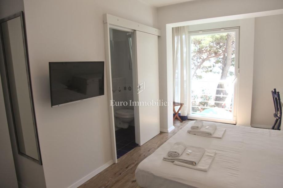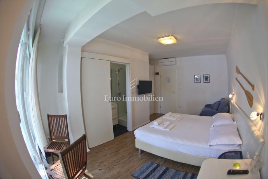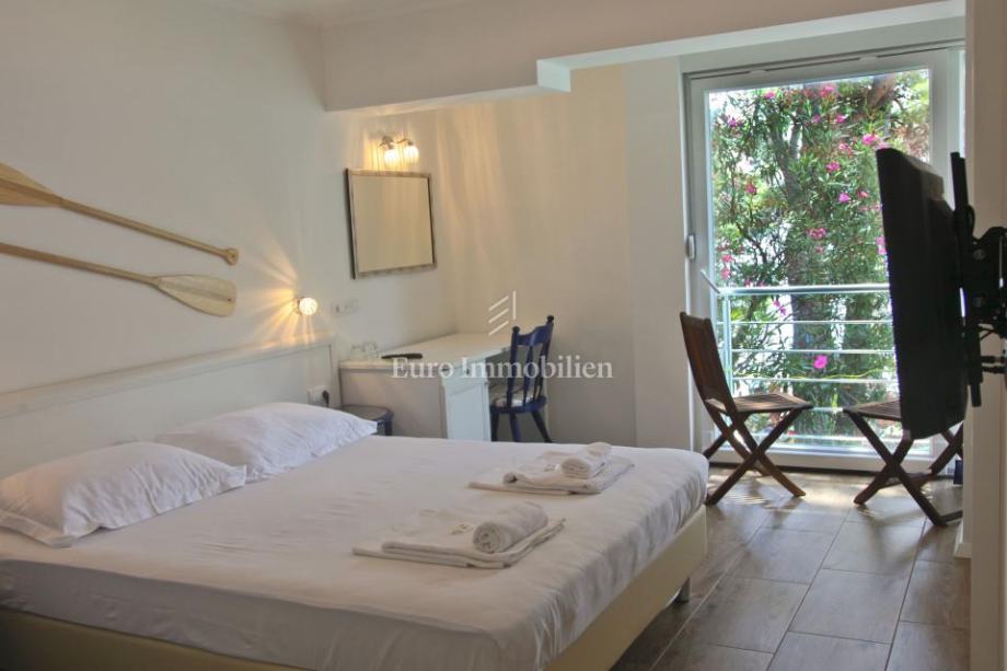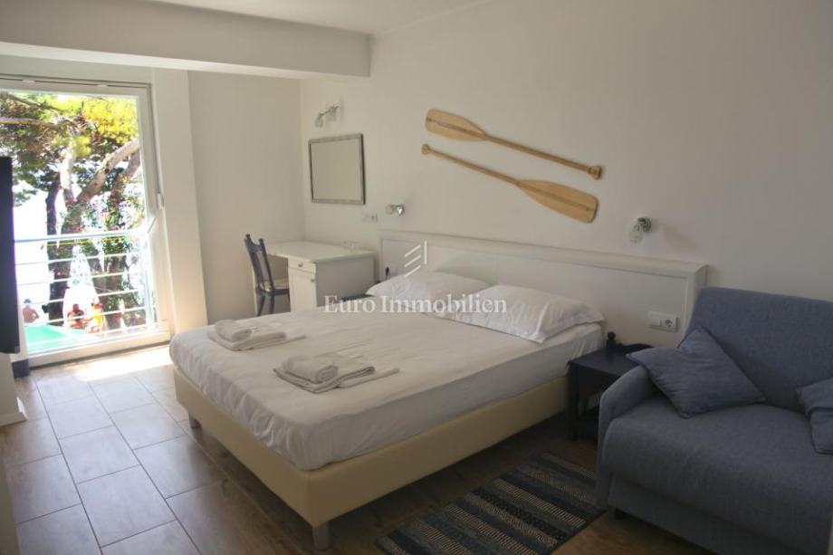 Obiteljski hotel smješten u prvom redu do mora na Makarskoj rivijeri, u mirnom turističkom mjestu nedaleko od Makarske. Hotel se prostire na 533 m² kroz četiri nadzemne etaže, s kapacitetom za 34 osobe. U prizemlju se nalazi restoran, bar, kuhinja, recepcija i prostrana terasa s 60 sjedećih mjesta uz plažu. Na prvom i drugom katu smješteno je 10 soba, dok treći kat nudi dva luksuzna apartmana s privatnim terasama i saunama. Objekt je potpuno renoviran 2014. godine, opremljen modernim sadržajem i klimatiziran, a iz svakog kutka pruža se spektakularan pogled na more. Osiguran je parking za goste. Vlasništvo 1/1, uporabna dozvola.