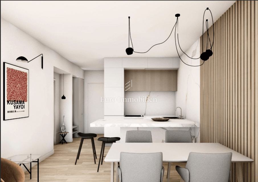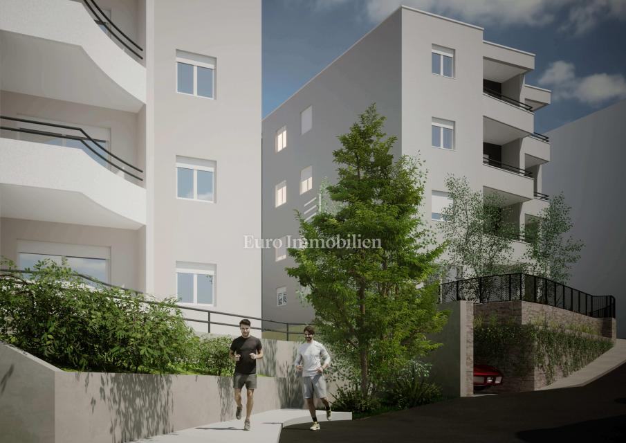 Stan S08 se nalazi na trećem katu zgrade, površine 94,44 m2, a sastoji od tri spavaće sobe, kuhinje, hodnika, dnevnog boravka s blagovaonom, dvije kupaonice, ostave i dva balkona s površinama od 6,96 m2 i 10,22 m2. Zgrada se sastoji od podruma,prizemlja i 3 kata s ukupno 8 stanova. Pri izgradnji se koriste materijali visoke kvalitete – parket u sobama, keramičke pločice 1. klase na balkonu kuhinji i kupatilu, led rasvjeta, protuprovalna vrata, instalacije za tv, sat, Internet, svaka soba je klimatizirana, kupatilo u potpunosti opremljeno za uporabu s walk in tušom i instaliranim podnim grijanjem, PVC otvori s roletama, iznimno kvalitetna zvučna i toplinska izolacija. Zgrada se nalazi na atraktivnoj lokaciji u istočnom djelu Makarske, mirnoj obiteljskoj četvrti u blizini šoping centra, gradskog bazena, igrališta za djecu i srednje škole.Udaljena je 7-8 minuta hoda po ravnom do rive, mora i gradske plaže. Useljenje se planira 04/2025. godine. Cijena stana je 3950 eura/m2. Cijene garaže su 25 000 - 40 000 eura ovisno o njihovoj površini.Stanovi se mogu rezervirati odmah. Vlasnik je firma tako da kupac ne plaća porez na promet nekretnina 3 % prilikom kupovine stana. Građevinska dozvola i vlasništvo su uredni.