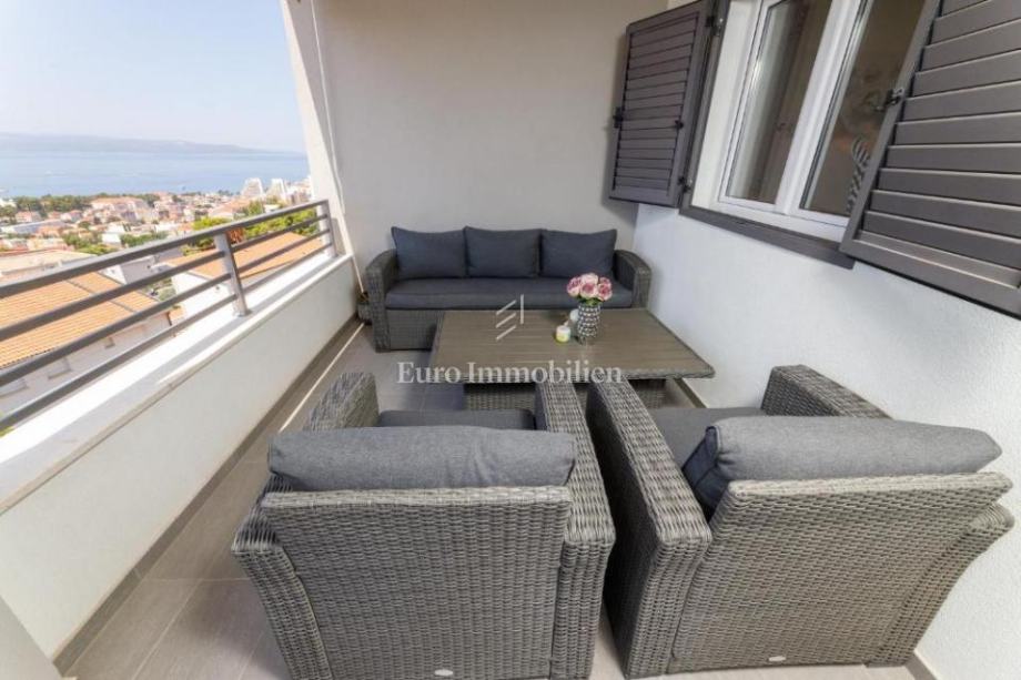 Sastoji se od tri spavaće sobe, dnevnog boravka, kuhinje, blagovaonice, dvije kupaonice, hodnika i prostrane južno orijentirane terase površine 16,64 m2 s koje se pruža prelijepi pogled na more, otoke i grad Makarsku. Ovaj lijepi prostrani stan je moderno namješten novim namještajem te se takav i prodaje.