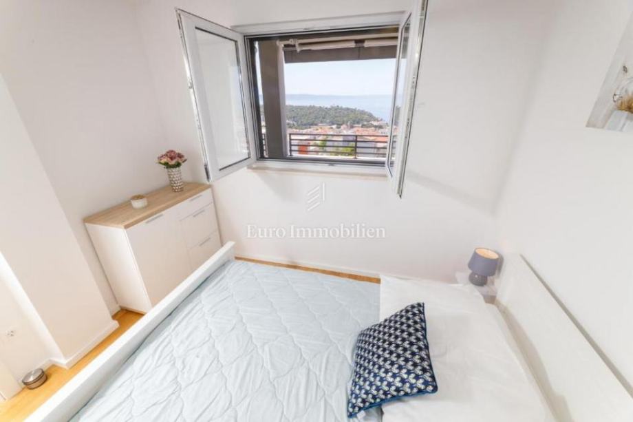 Atraktivan trosobni stan s garažom iznad centra Makarske sa otvorenim pogledom na more. Stan je izuzetno rijetko korišten, gotovo nov i odmah useljiv. Površine 91 m2 te se nalazi na drugom katu urbane vile novije gradnje. Stanu pripada prostrana garaža površine 19,29 m2 i dvije ostave površine 5 m2.