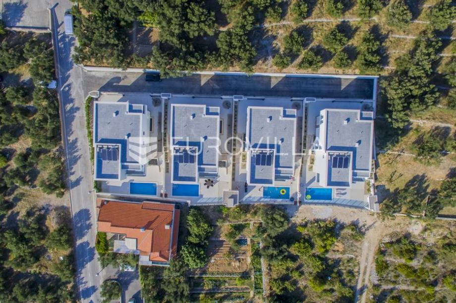 Vila 4 površine oko 350m2 (suteren, prizemlje i kat), a površina pripadajuće parcele iznosi oko 420m2.Villa ima otvoren pogled na more i otoke s jedne strane te na planinu Biokovo s druge.Cijeli kompleks je pomno dizajniran i kompletno opremljen svim sadržajima i opremom potrebnom za stanovanje...