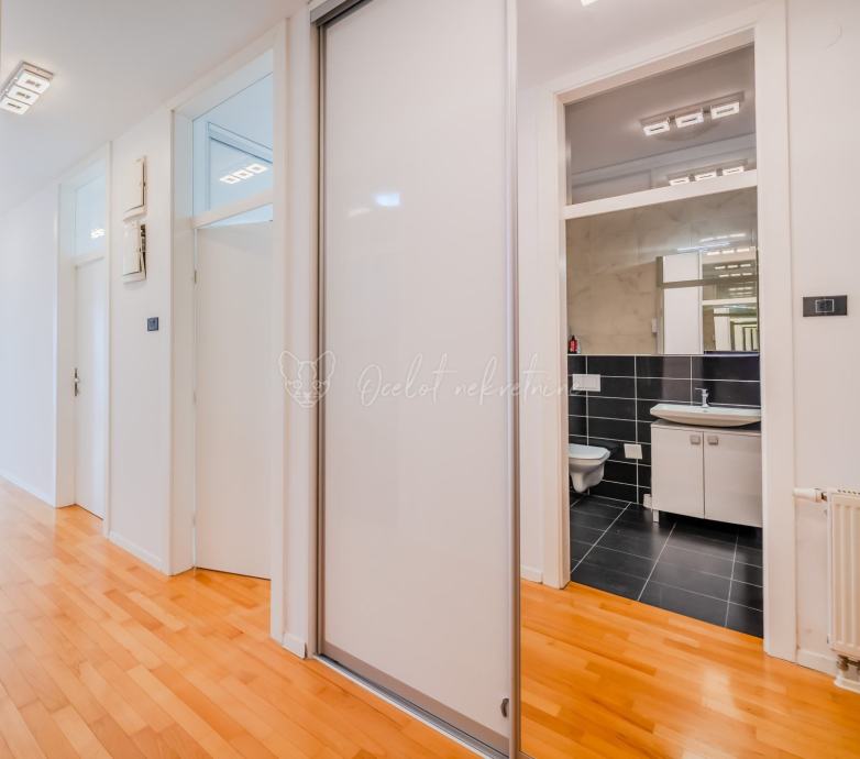 Stan se odlikuje odličnim rasporedom i obiljem prirodnog svjetla, a poseban dojam ostavlja otvoren, neometan pogled prema Stadion Maksimir i sportsko-rekreacijskom kompleksu Svetice. Dnevni dio prostora ugodno je povezan s blagovaonicom, dok su dvije spavaće sobe odvojene za mir i privatnost. Kuhinja je zasebna, stan raspolaže ostavom, kupaonicom s WC-om te dodatnim odvojenim toaletom, a veliki hodnik pruža dovoljno prostora za ugradbene ormare. Prostrana loggia od 12 m² savršena je za opuštanje, rad od kuće ili druženje s obitelji i prijateljima.